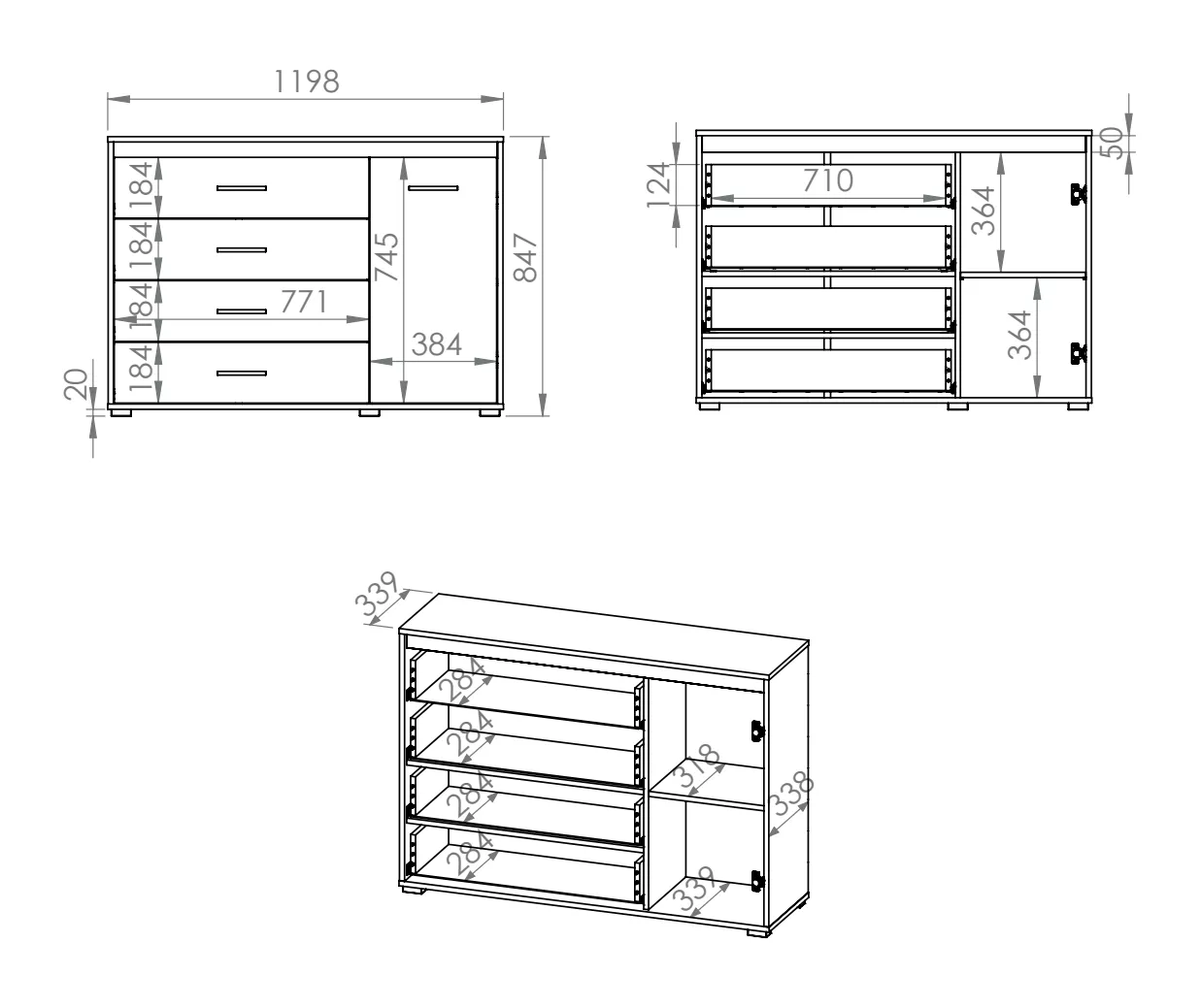 - Typ komody, botníku