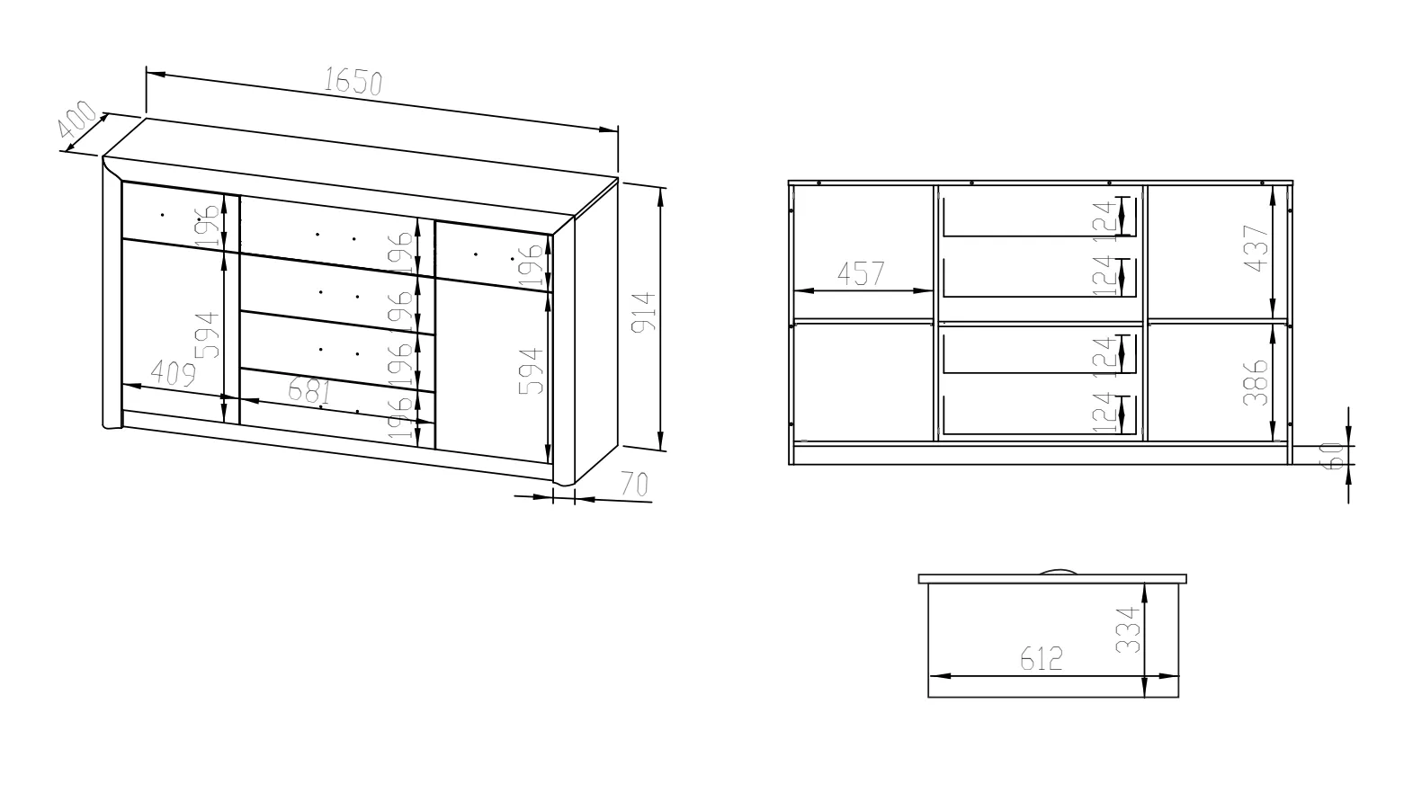 Široká kombinovaná komoda KAELA se hodí do všech moderních ložnic či obývacích pokojů. Disponuje 4 šuplíky se zpevněným dnem a 2 policemi.
