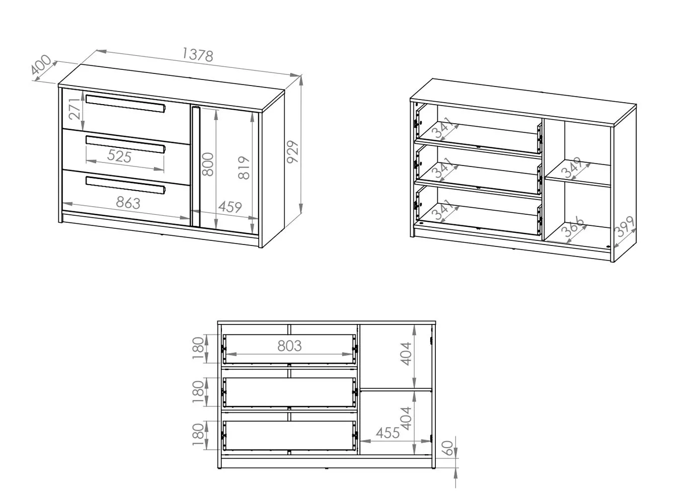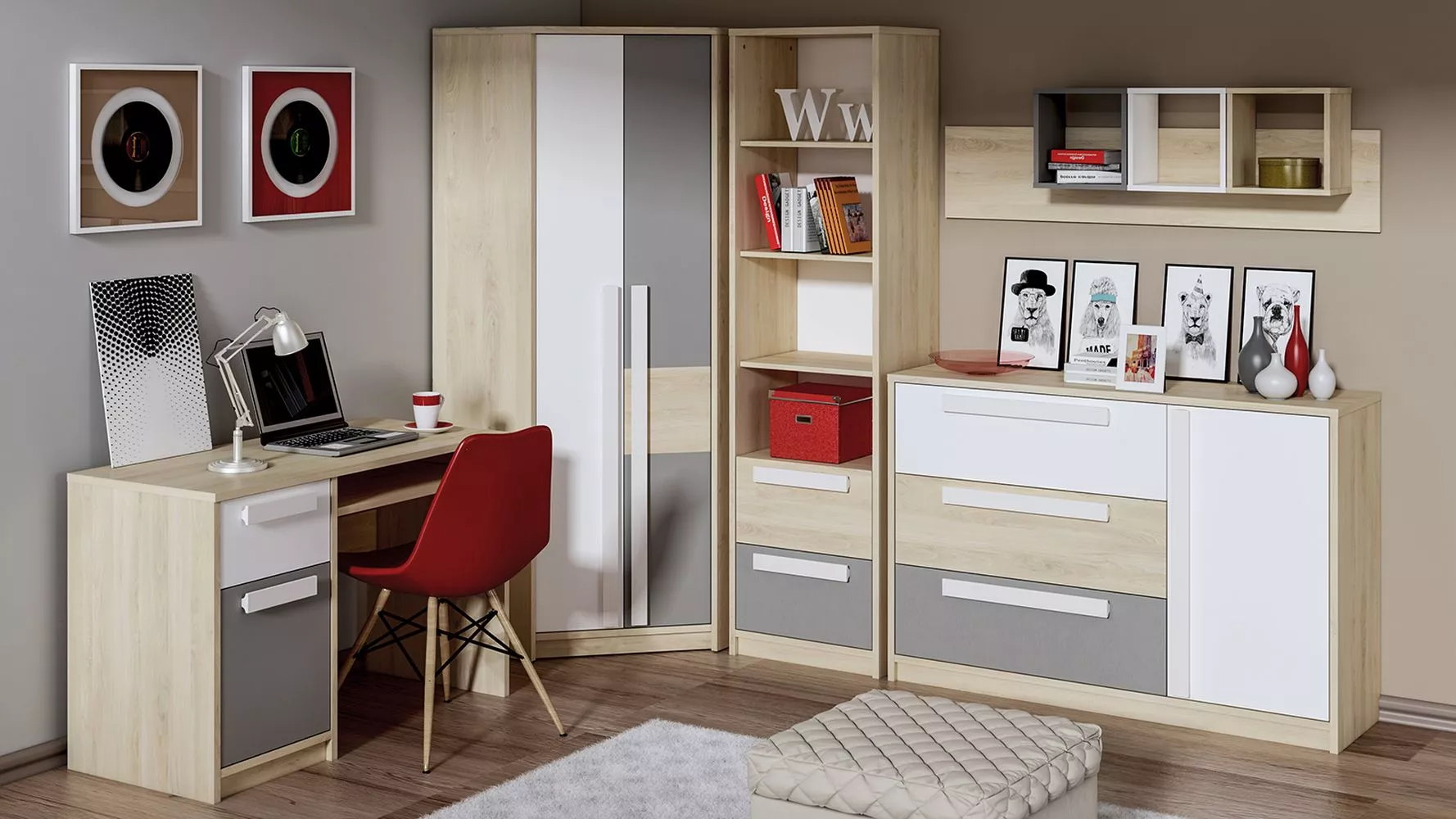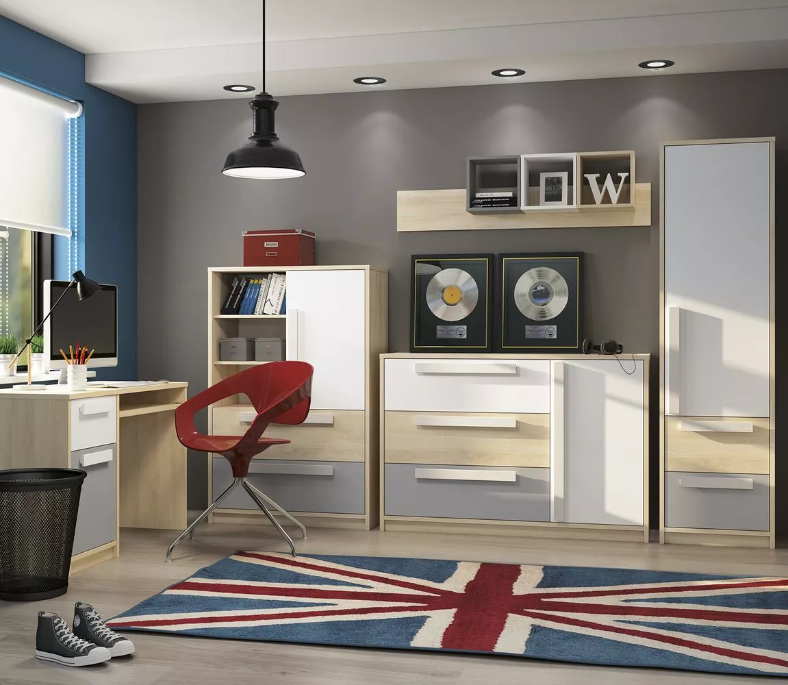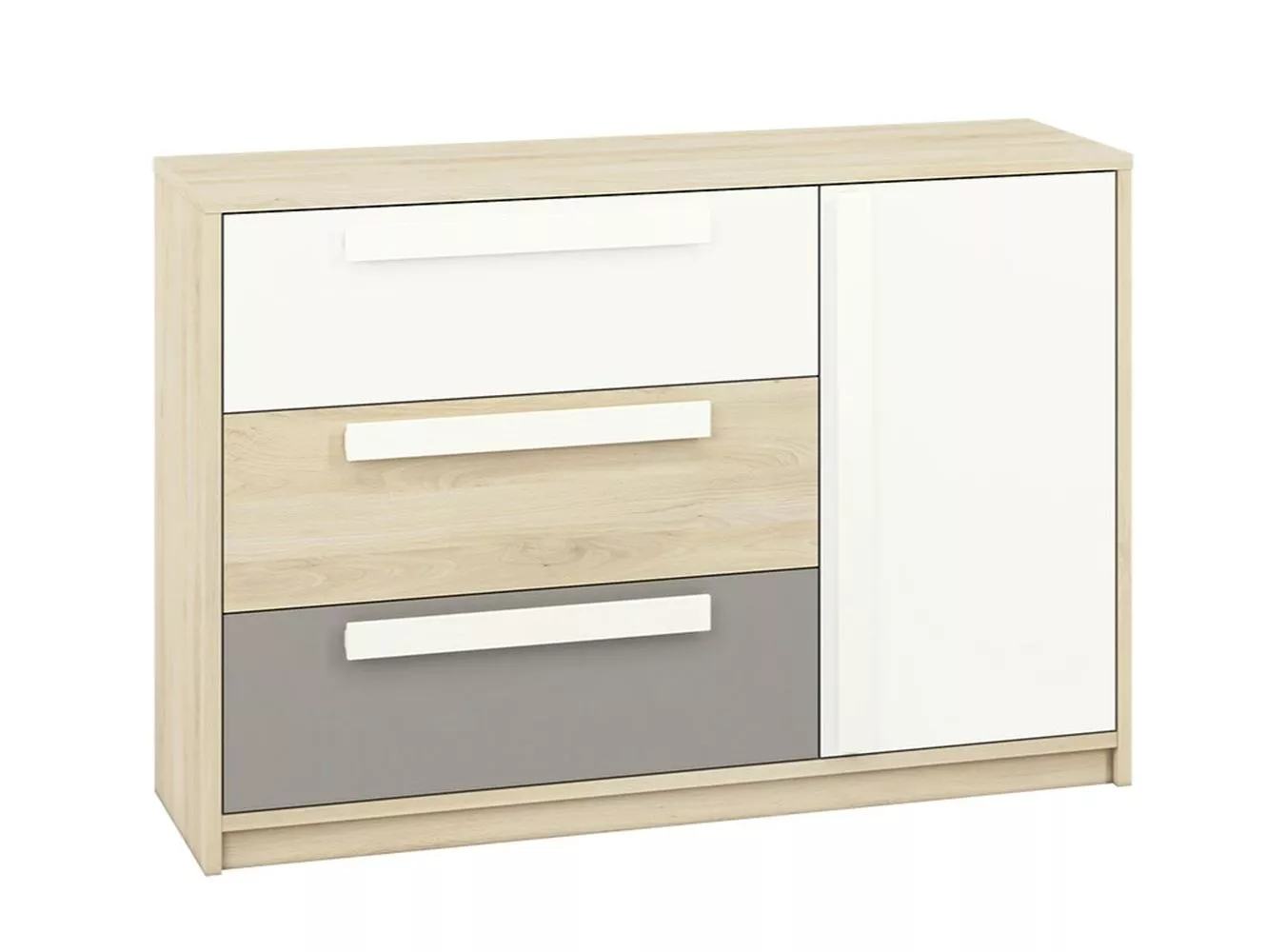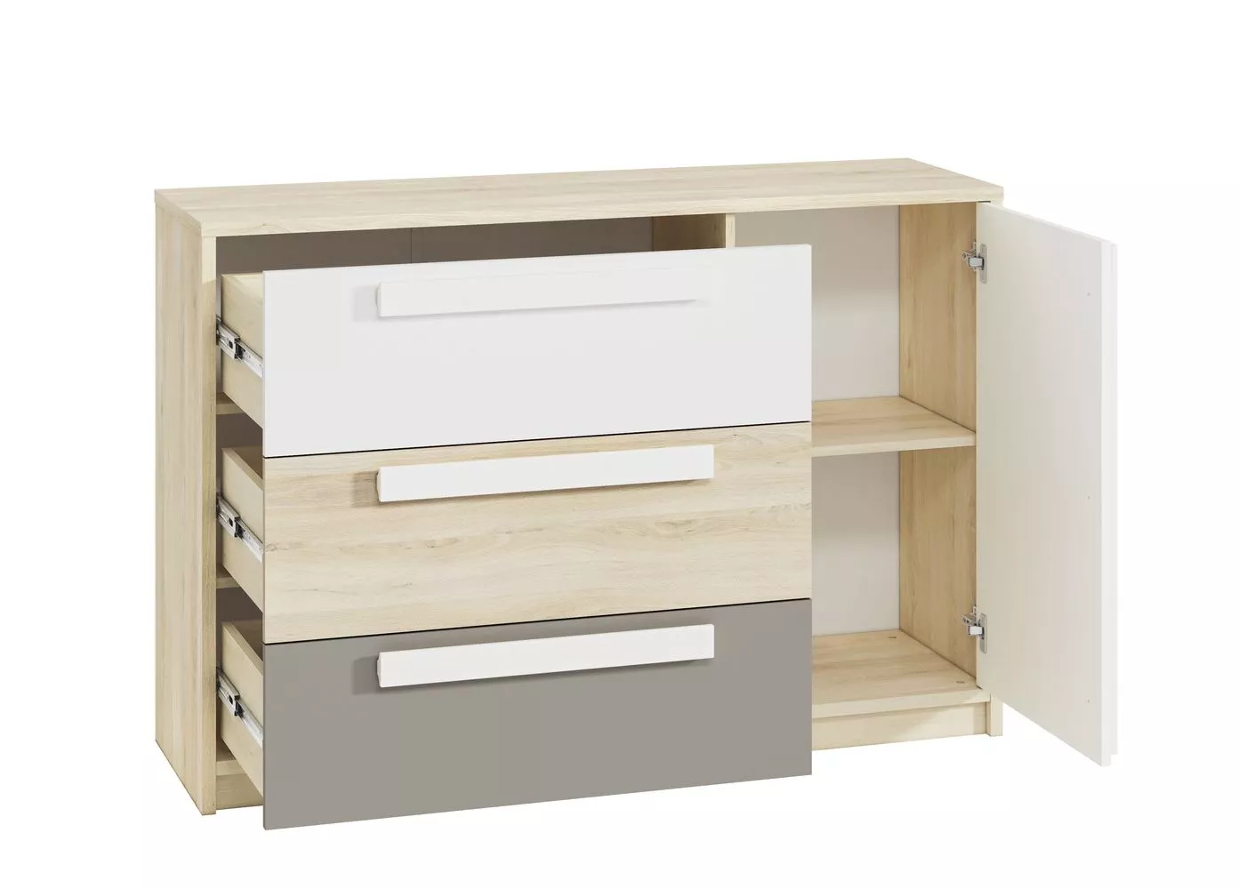 Velká komoda INNES se hodí do všech studentských pokojů. Disponuje 3 šuplíky se zpevněným dnem a 2 přihrádkami.