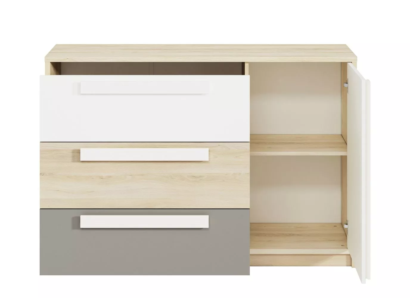 Velká komoda INNES - buk fjord / bílá / šedá platina