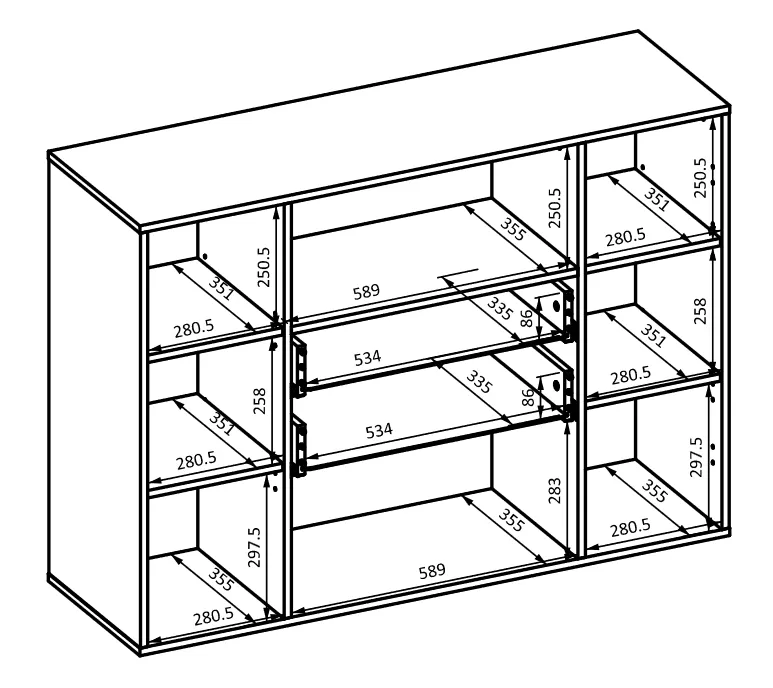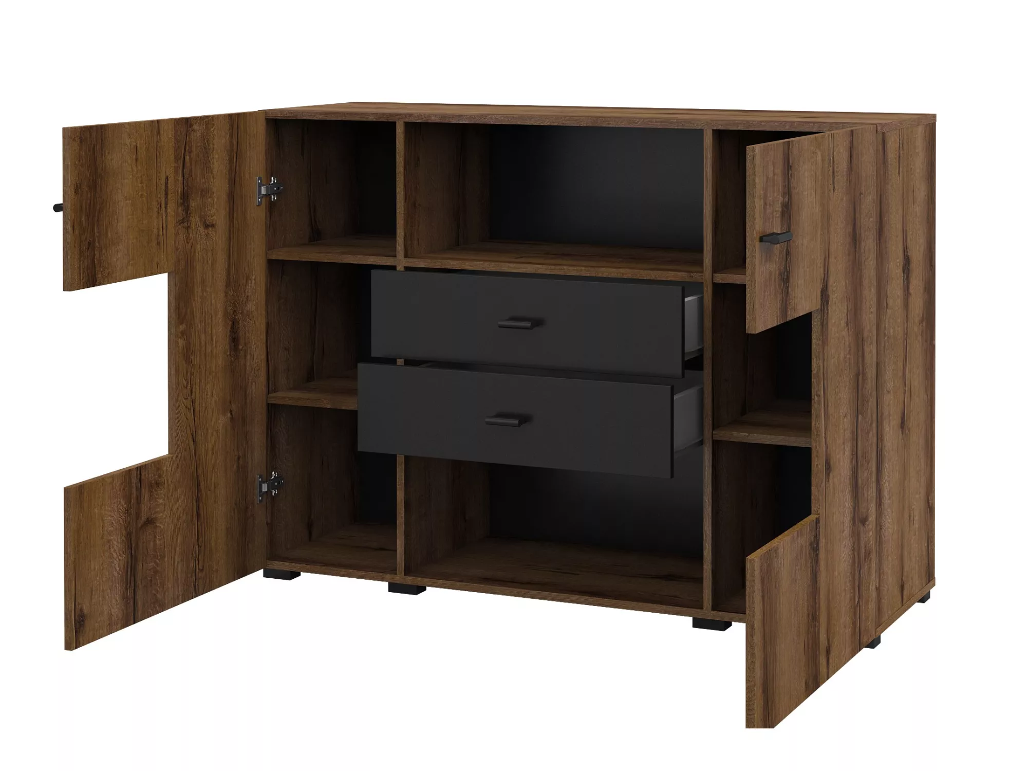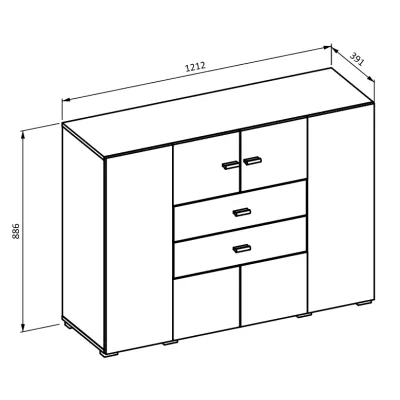 Kombinovaná komoda NIKOL se hodí do všech moderních ložnic či obývacích pokojů. Disponuje 2 šuplíky, 8 přihrádkami a 2 dvířky.