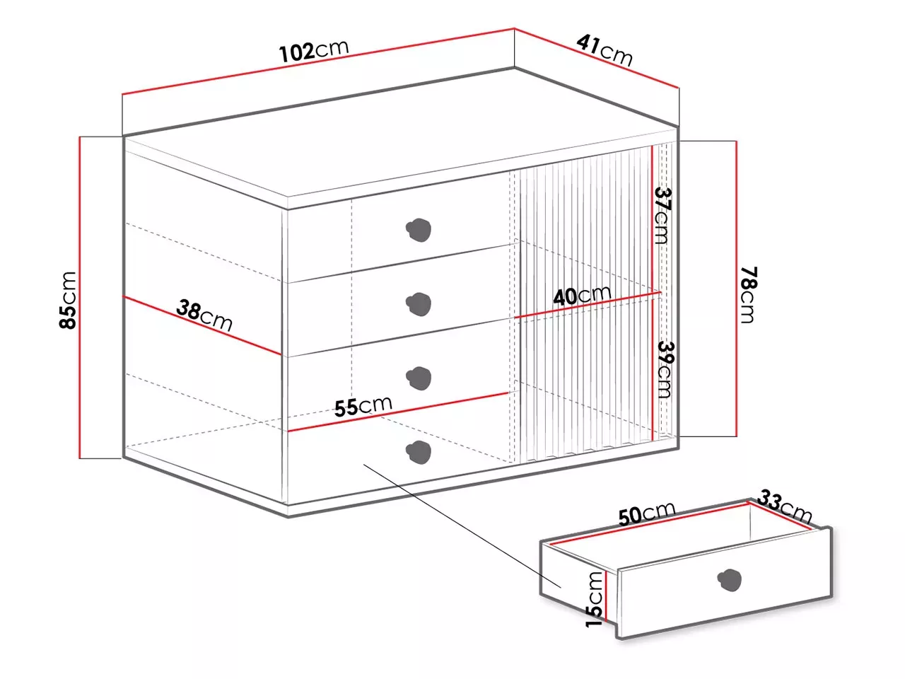 - materiál zadní části komody: HDF deska