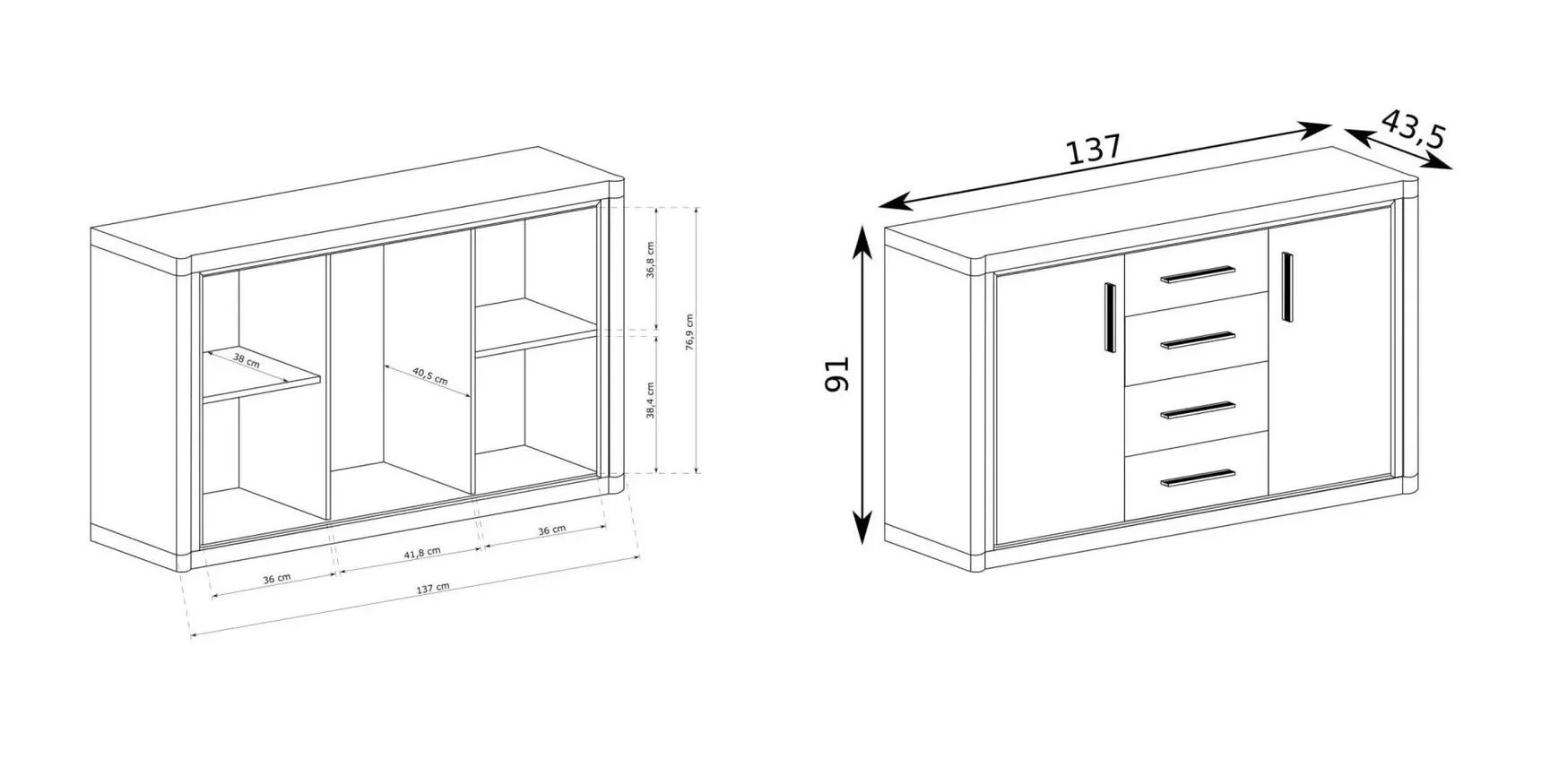 Moderní kombinovaná komoda AIRA efektně doplní uspořádání obývacího pokoje v moderním stylu. Funkčnost nábytku dodává řada praktických zásuvek a uzavřených skříněk, které jsou jednoduše přizpůsobeny k ukládání předmětů.