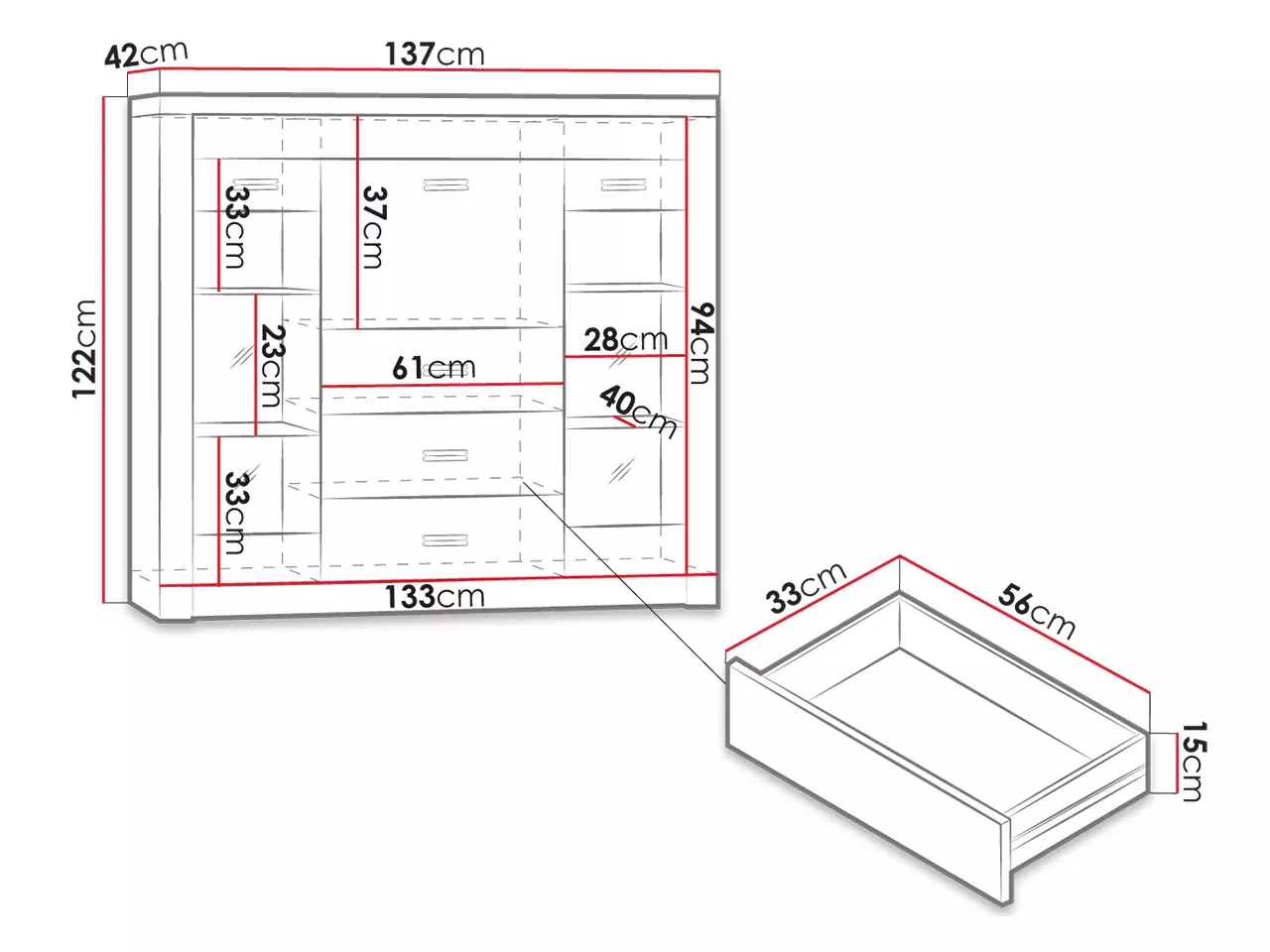Prosklená komoda BESS najde své využití v každém moderním interiéru. V prostorných zásuvkách lze snadno ukládat jakékoliv předměty, včetně studijního materiálu či sezónního oblečení. Prosklené skříňky poskytují prostor pro vystavení a uložení dekorací, suvenýrů nebo knih.