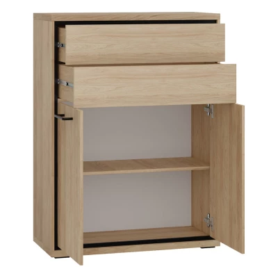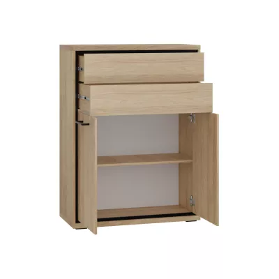 Kombinovaná komoda GINETTE najde své využití v každém moderním interiéru. V prostorné skříňce a zásuvkách lze snadno ukládat jakékoliv předměty, včetně studijního materiálu či sezónního oblečení. Komoda je vybavena technologií "PUSH TO OPEN", pomocí které lze otevřít zásuvky. Tento inovativní systém otevírání spočívá v mírném stlačení předních částí. Skříňky se otevírají pomocí kovových úchytů v černé barvě.
