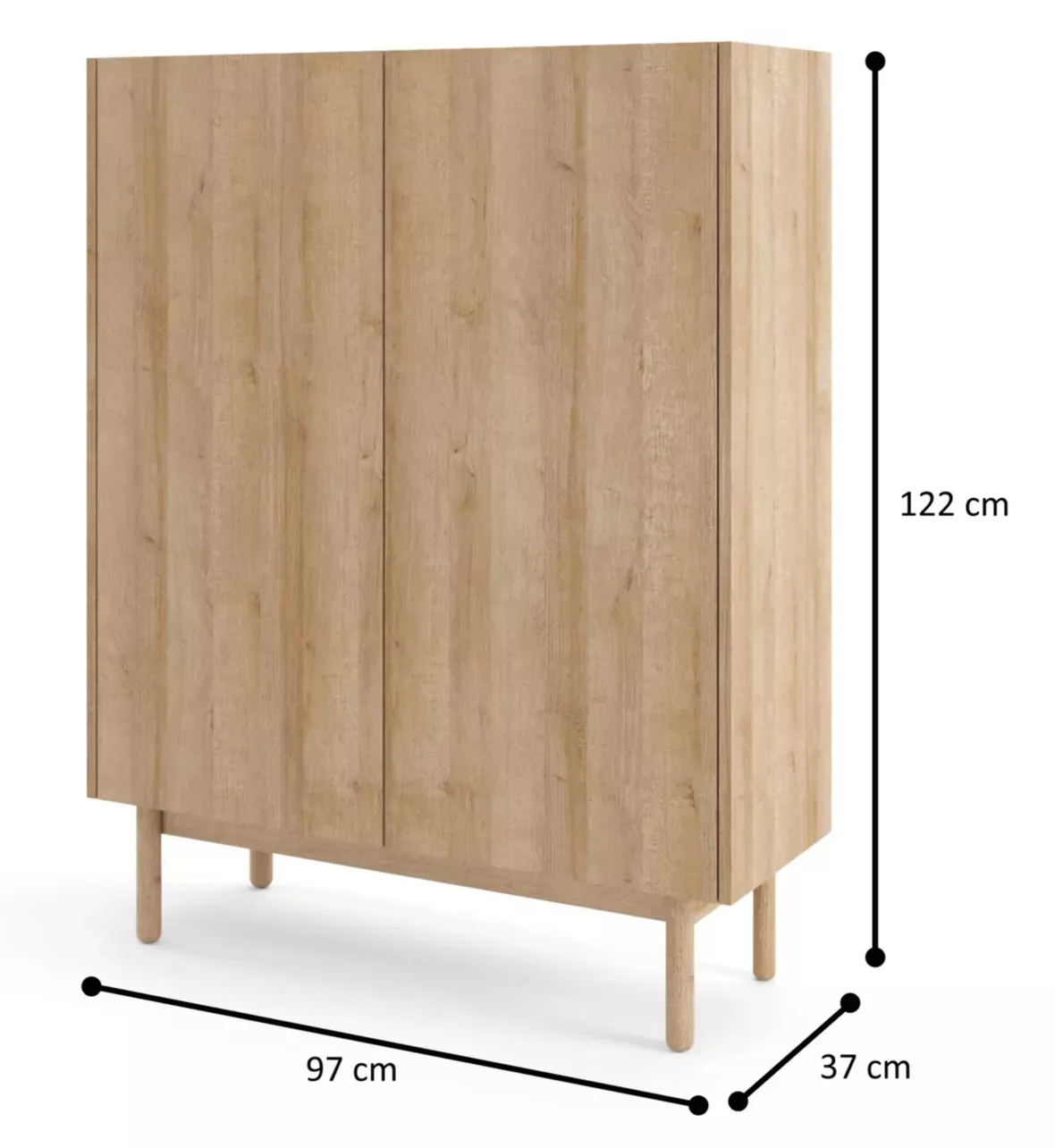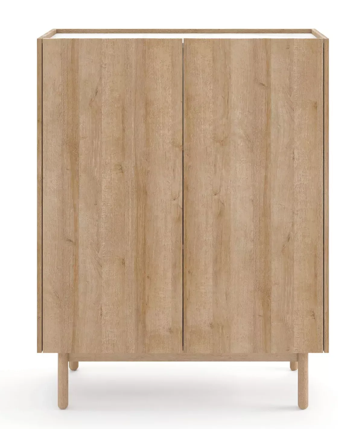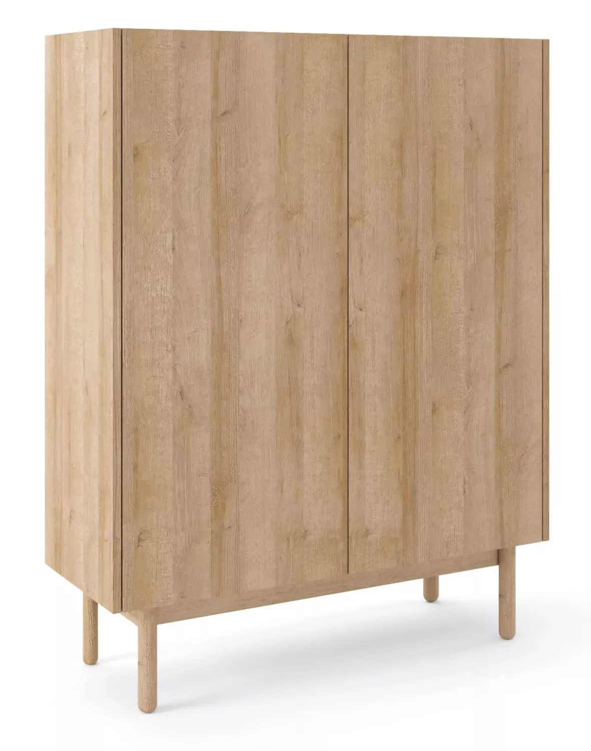 Vysoká komoda ABUA na dřevěných nožičkách v decentním provedení, s jedinečným vzhledem a pečlivě zpracovanými detaily se hodí do interiéru v rustikálním nebo skandinávském stylu. Lze ji využít nejenom v obývacím pokoji, ale i v ložnici.
