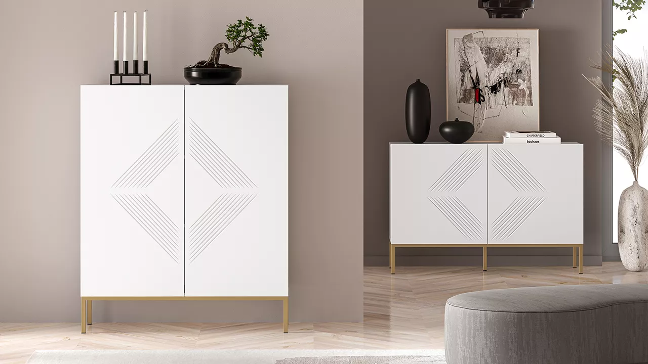 Komoda s dvířky ADELE 3 - bílá / zlatá