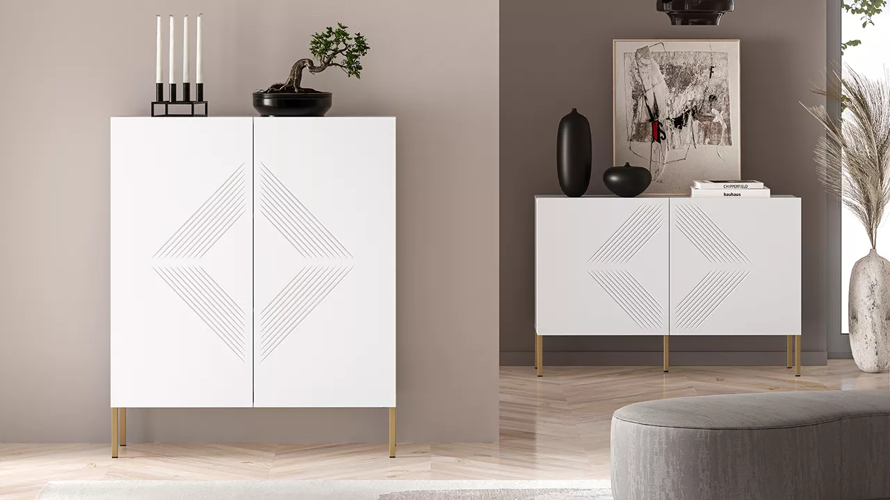 Komoda s dvířky ADELE 2 - bílá / zlatá