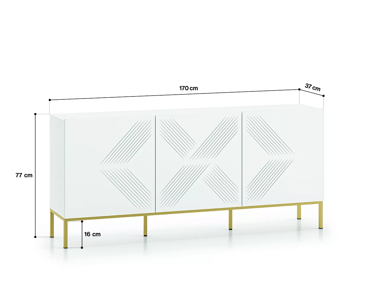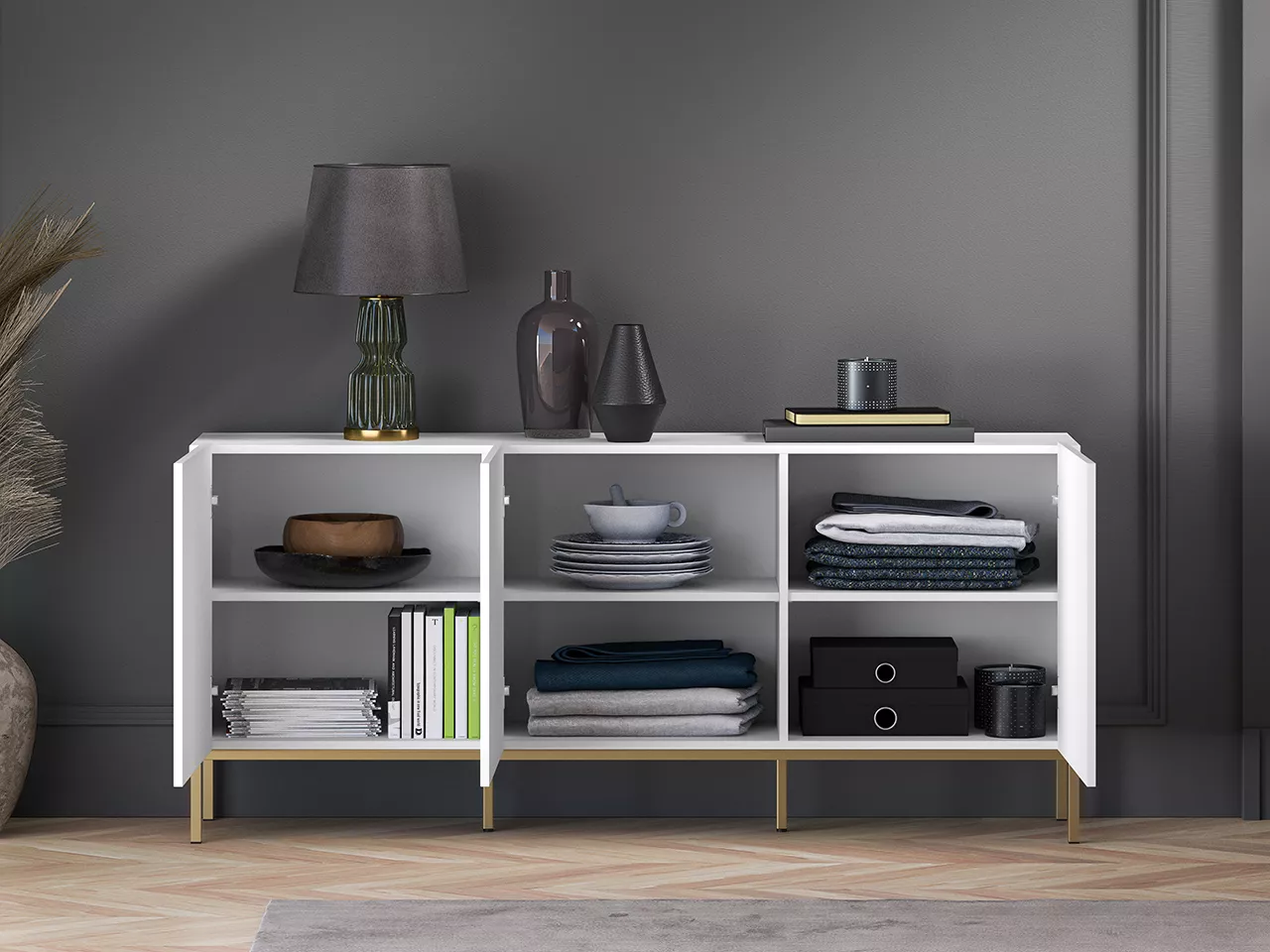 Třídveřová komoda ADELE 3 - bílá / zlatá