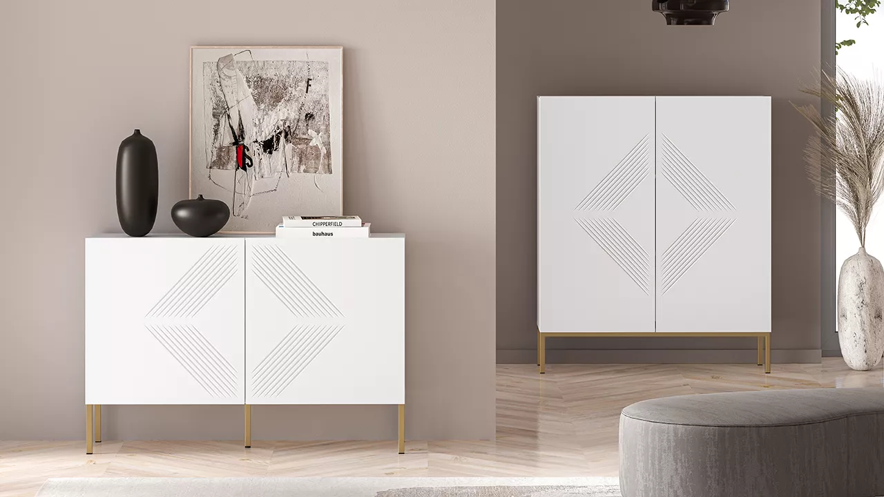 Dvoudveřová komoda ADELE 2 - bílá / zlatá