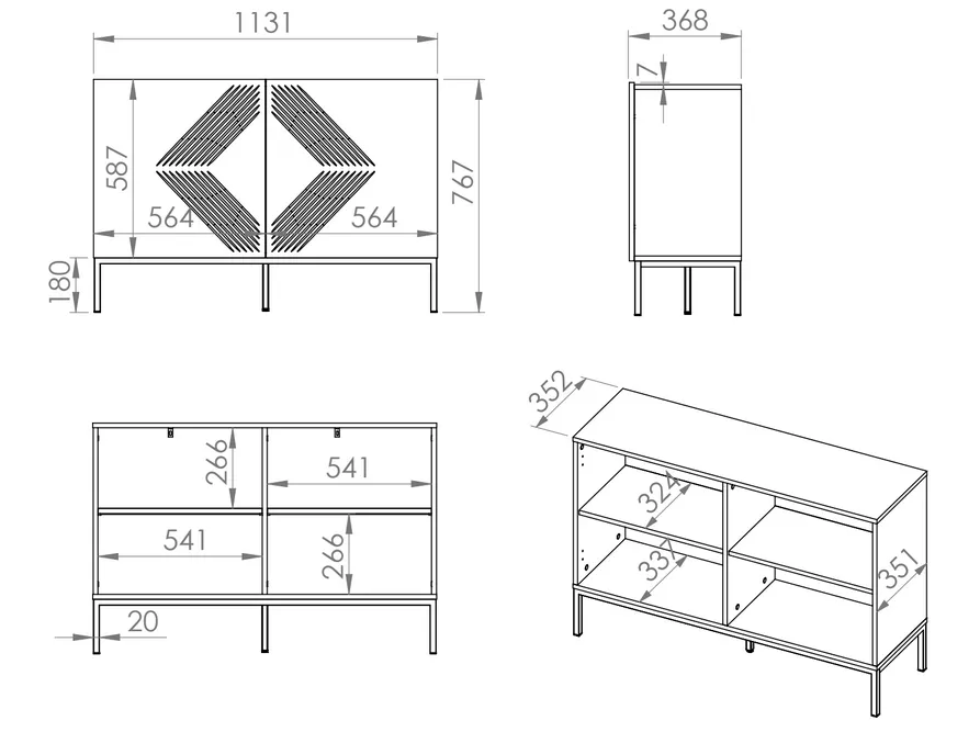 Dvoudveřová komoda ADELE 2 zaujme především moderním designem. Komoda disponuje tichým dovíráním a 2 policemi.