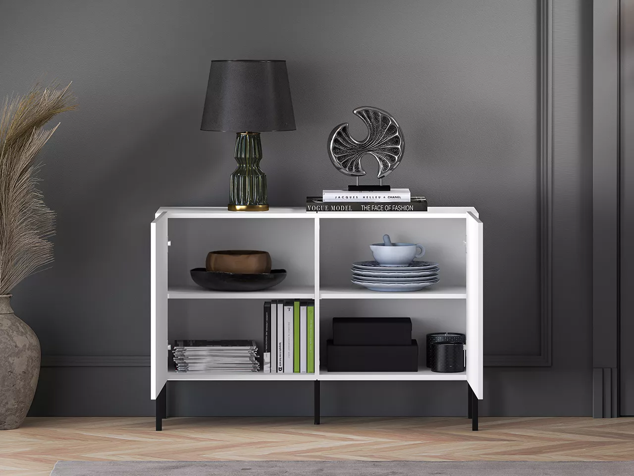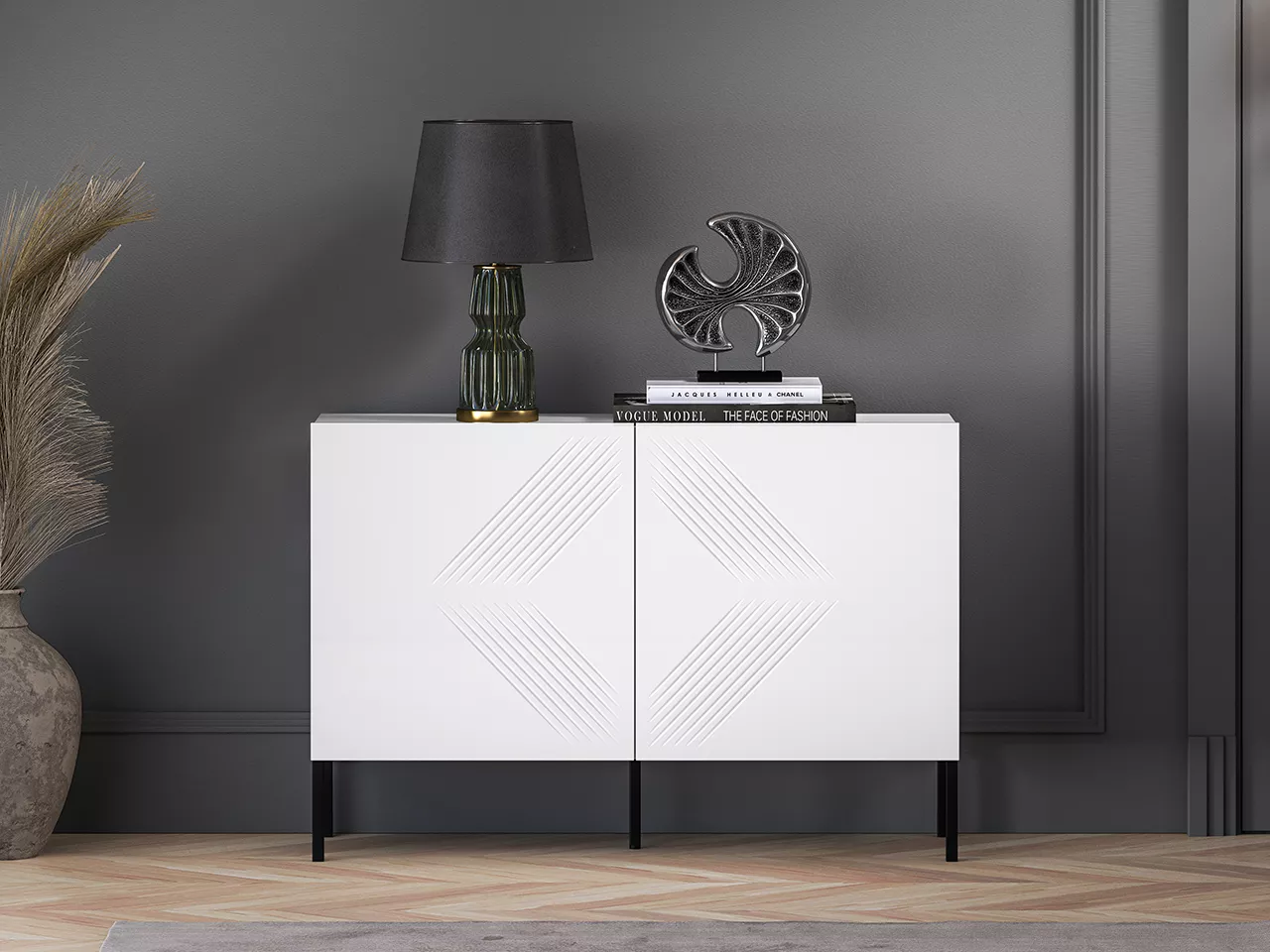 Dvoudveřová komoda ADELE 2 zaujme především moderním designem. Komoda disponuje tichým dovíráním a 2 policemi.