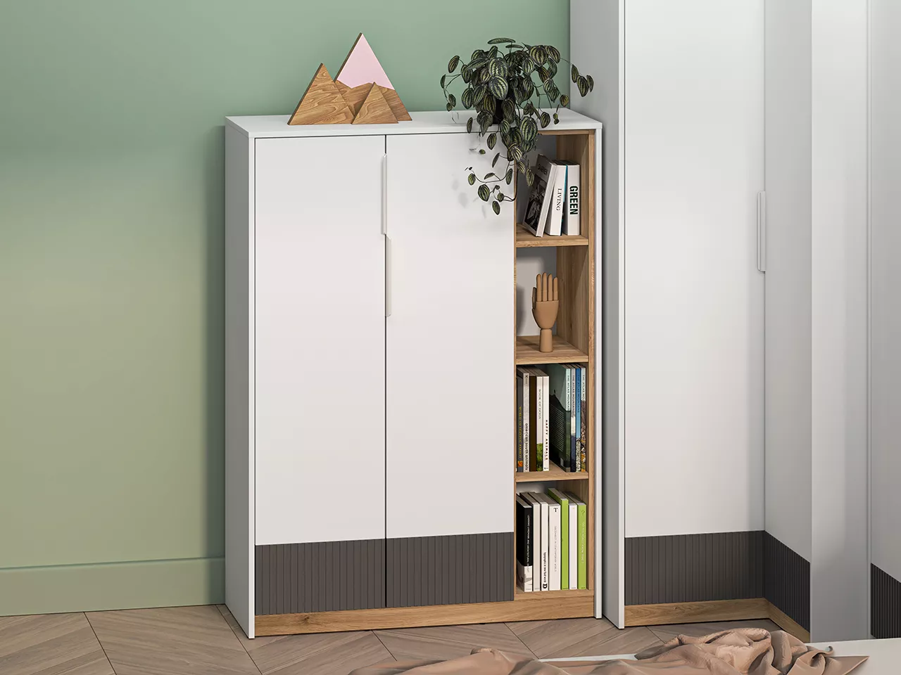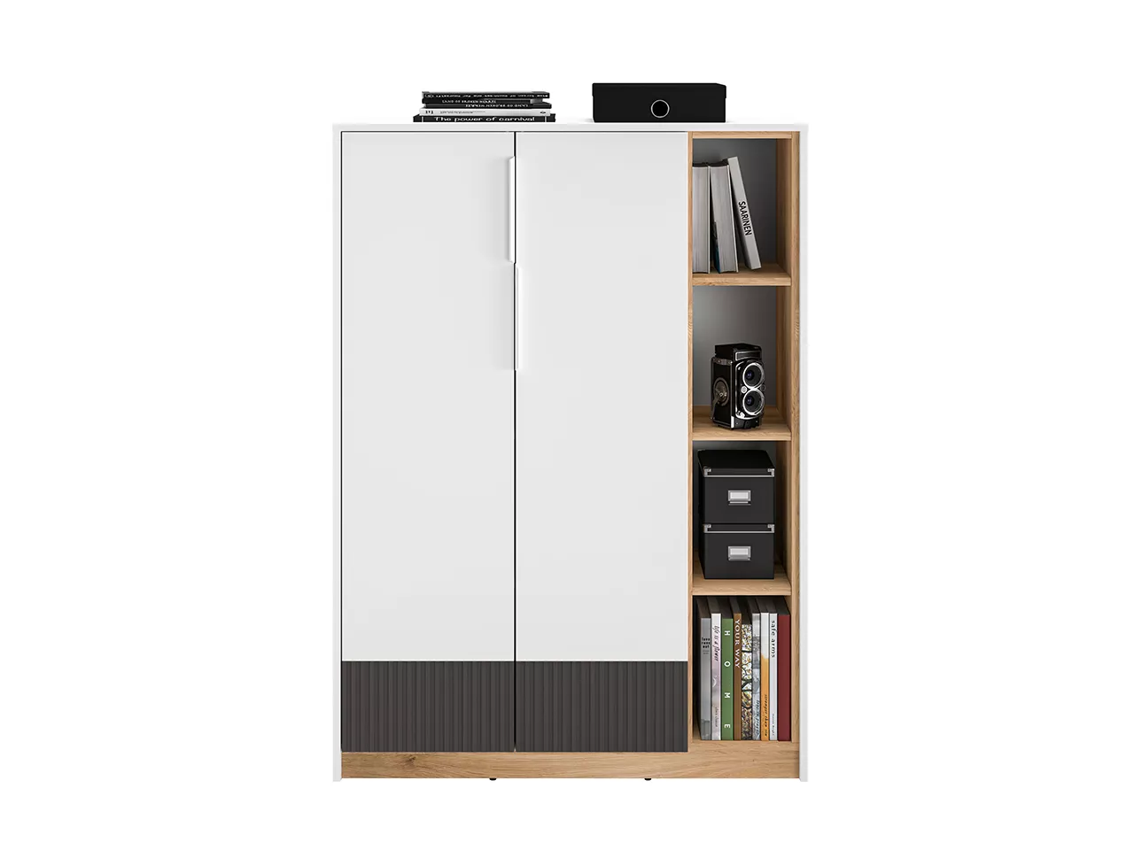 Komoda s dvířky ARANA - bílá / dub castello / grafitová