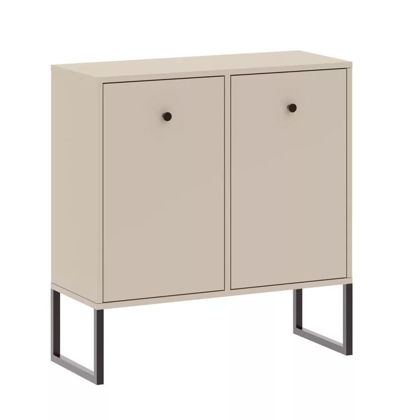 Udržte svůj domov v perfektním pořádku s úzkou komodou s dvířky SANGER, která nabízí dostatek prostoru pro vaše oblečení, a zároveň dodá vašemu interiéru moderní nádech. Jedinečný design komody je založen na vysokých kovových nožkách a decentních úchytech ve tvaru knoflíků.