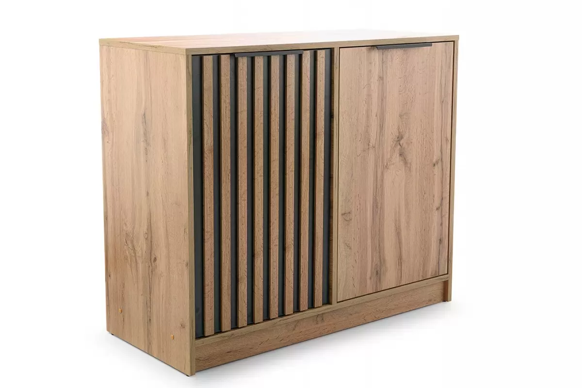 Dvoudveřová komoda AGNESA se hodí do všech moderních interiéru. Zaujme především moderními lamelami. Součástí komody jsou 2 prostorné přihrádky.