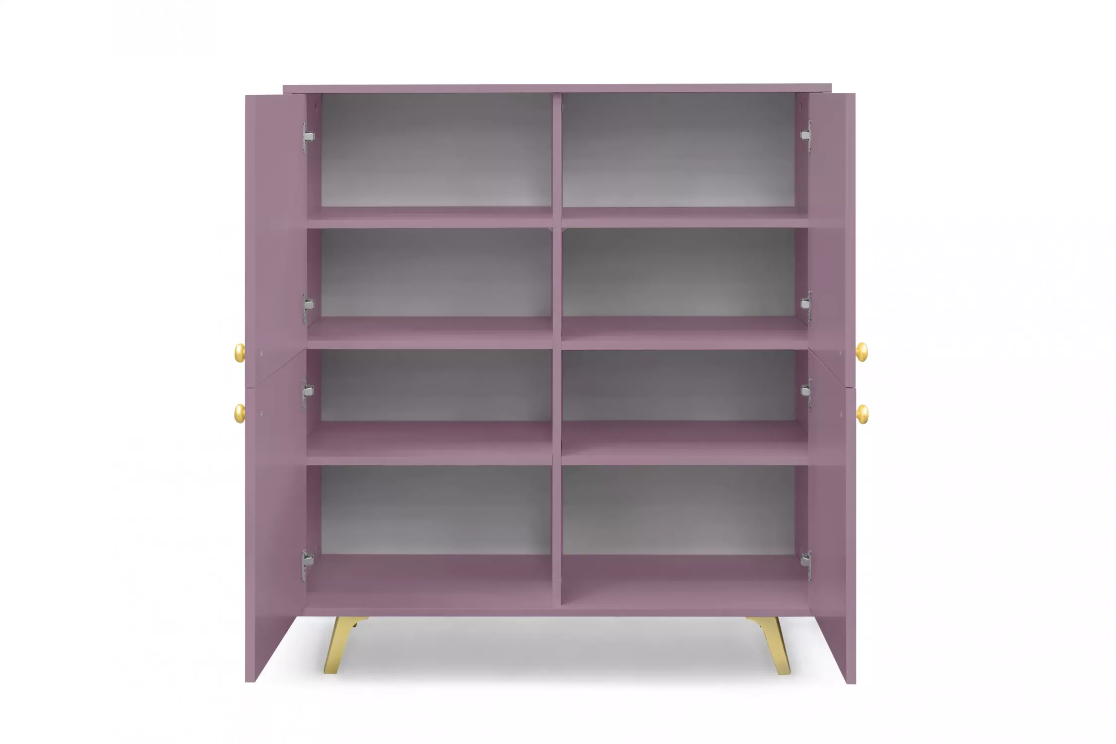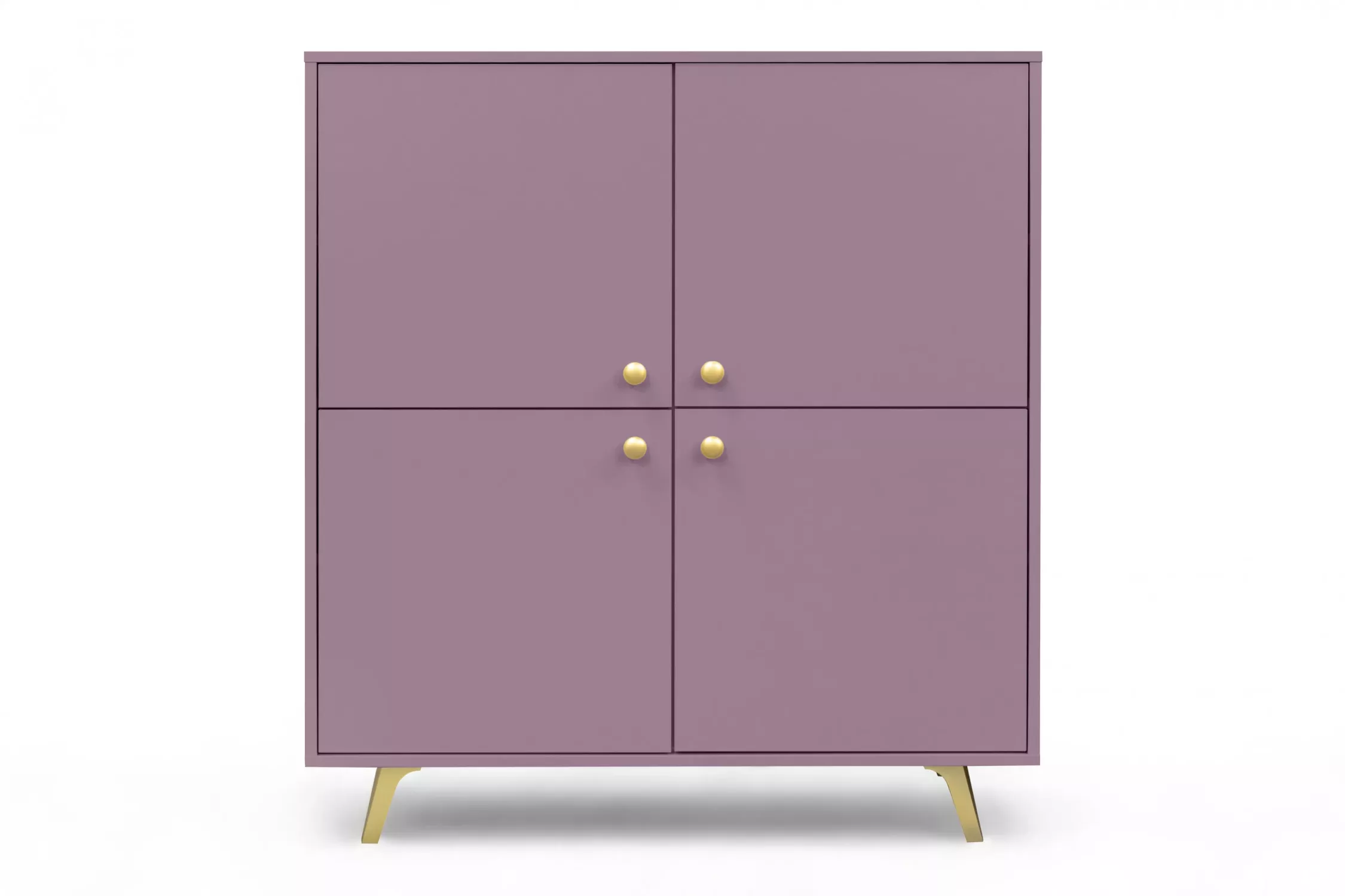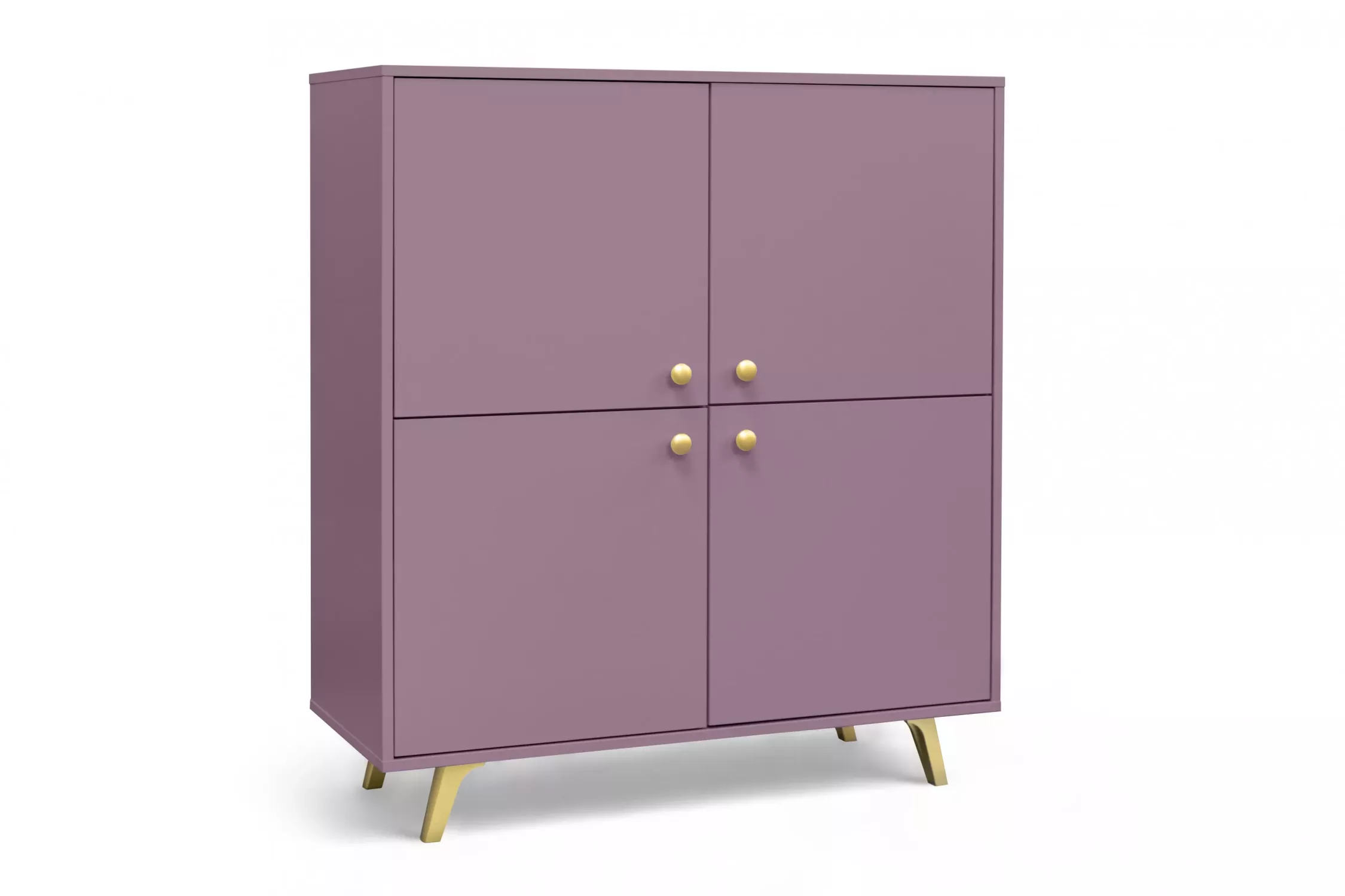 Čtyřdveřová komoda JOELE se hodí do každého moderního studentského či dětského pokoje. Poskytuje dostatek úložného prostoru pro uložení oblečení nebo hraček. Úchyty ve zlaté barvě zdůrazní výjimečnost této komody.