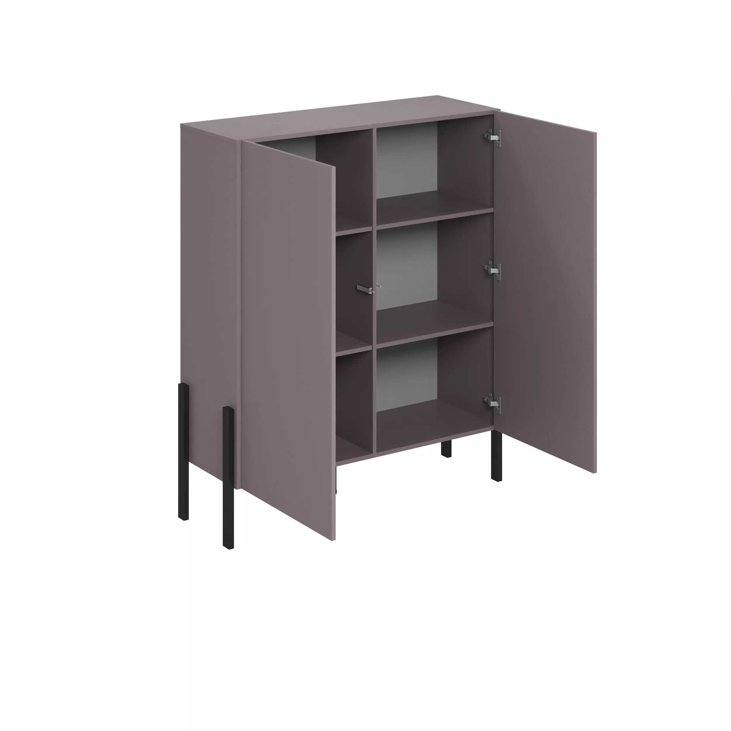 Dvoudveřová komoda RAILA vás zaujme svým elegantním a jednoduchým designem. Kovové nožky dodávají komodě lehkost. Dostatek úložného prostoru nabízí 4 prostorné police.