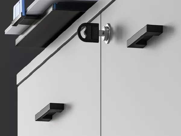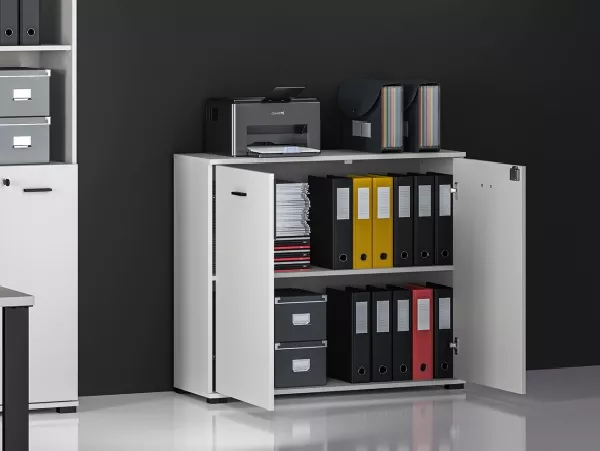 Komoda s dvířky AZRA je moderní a praktický kus nábytku do vaší kanceláře. Slouží k úschově dokumentů, které díky uzamykatelným dvířkám budou chráněny.