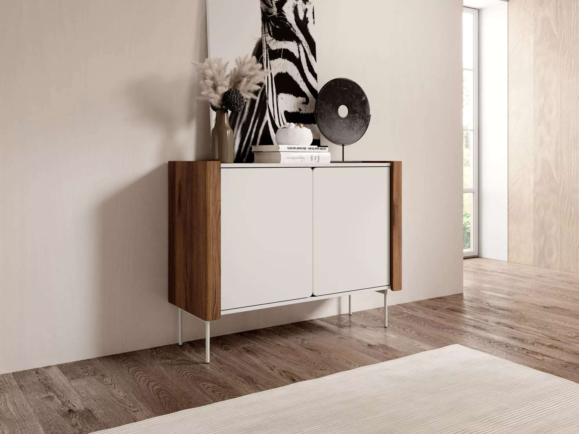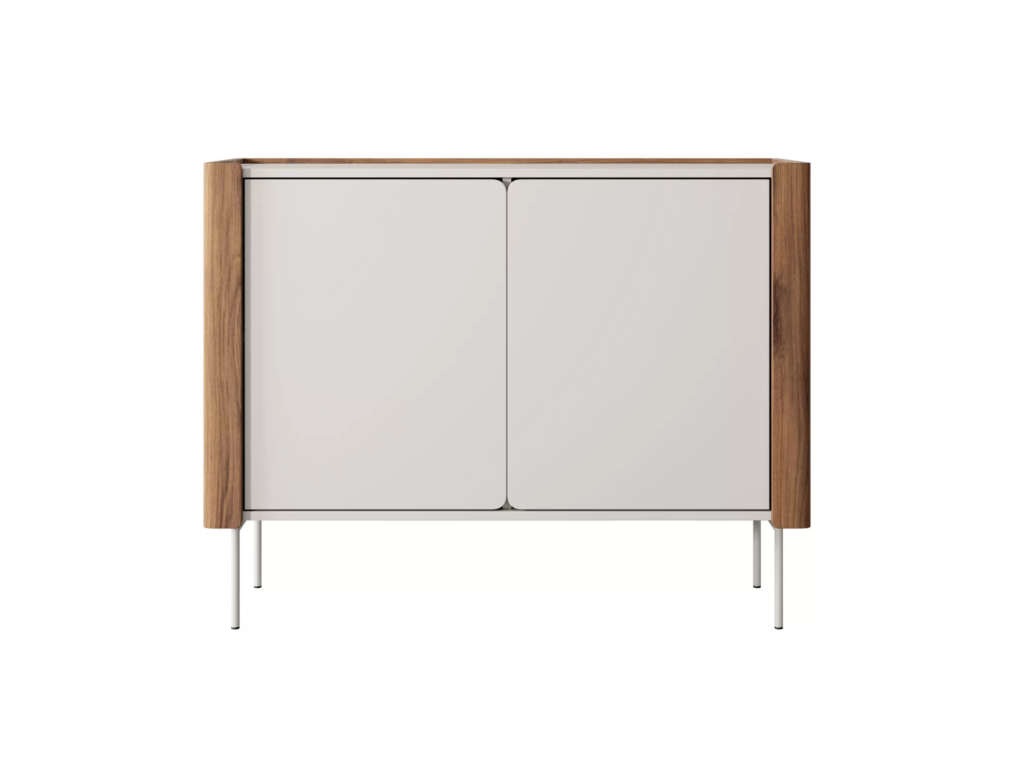Komoda s dvířky LIA se vyznačuje kovovými nožkami v kašmírové barvě. Hodí se nejen do obývacích pokojů, ale i do ložnice či předsíně. Chytře organizovaný úložný prostor je rozdělen do dvou prostorných polic.