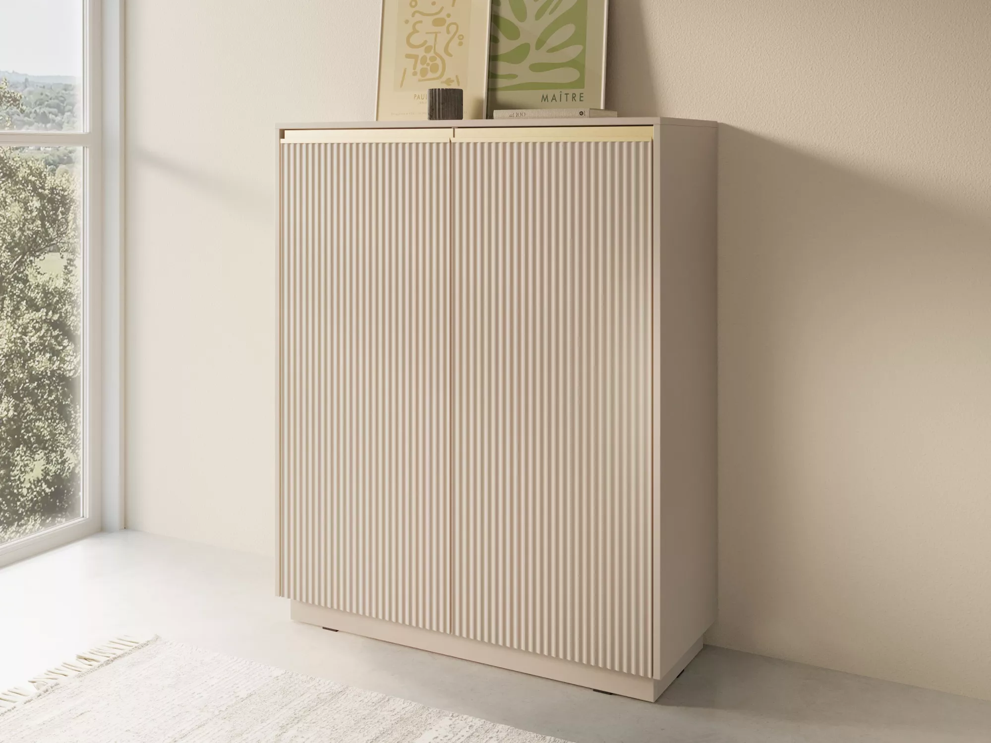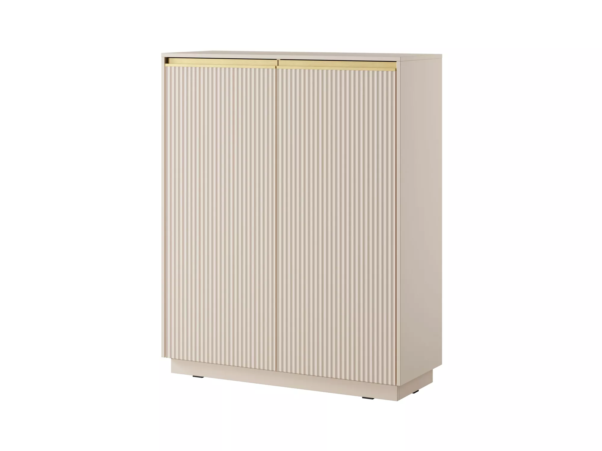 Vysoká komoda s policemi MANANA se vyznačuje jedinečným designem díky ozdobnému frézování. Hodí se do všech moderních obývacích pokojů, ložnice či předsíně. Disponuje 4 prostornými uzavřenými policemi.
