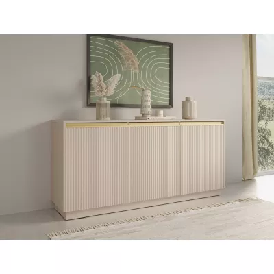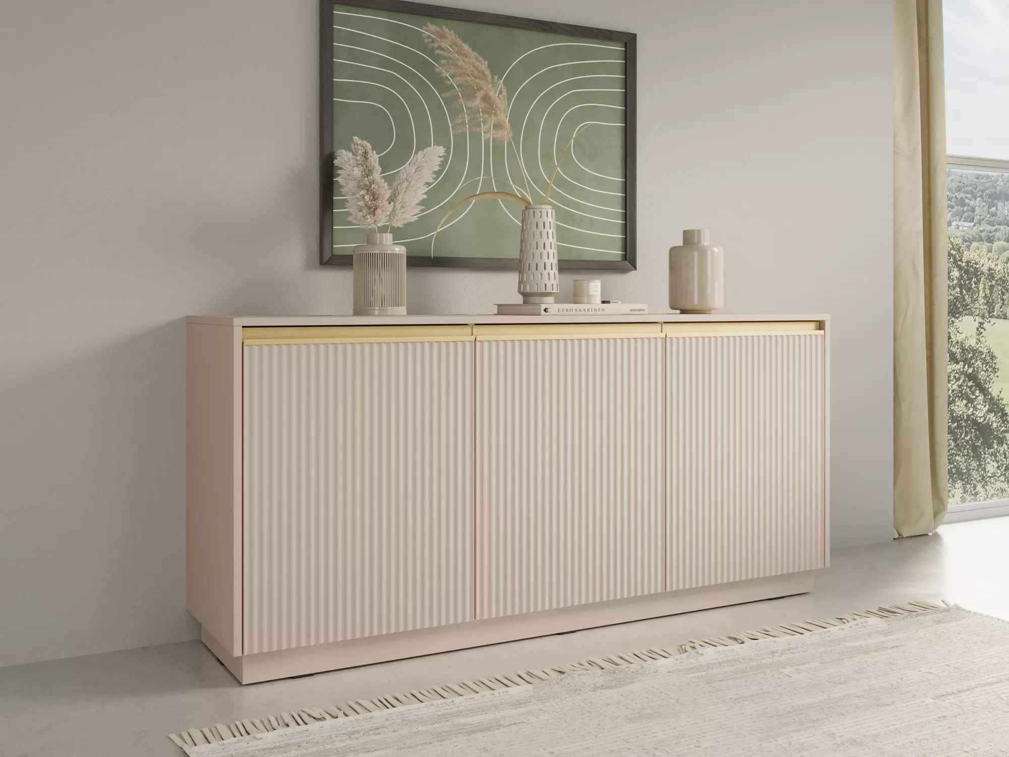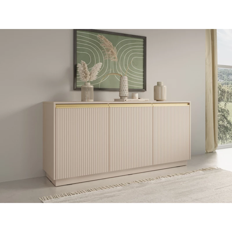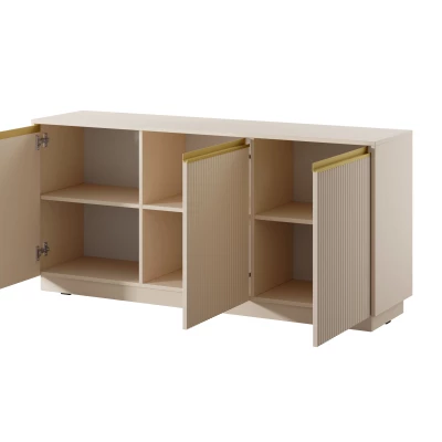 Široká komoda s policemi MANANA se vyznačuje jedinečným designem díky ozdobnému frézování. Hodí se do všech moderních obývacích pokojů, ložnice či předsíně. Disponuje 3 prostornými uzavřenými policemi.