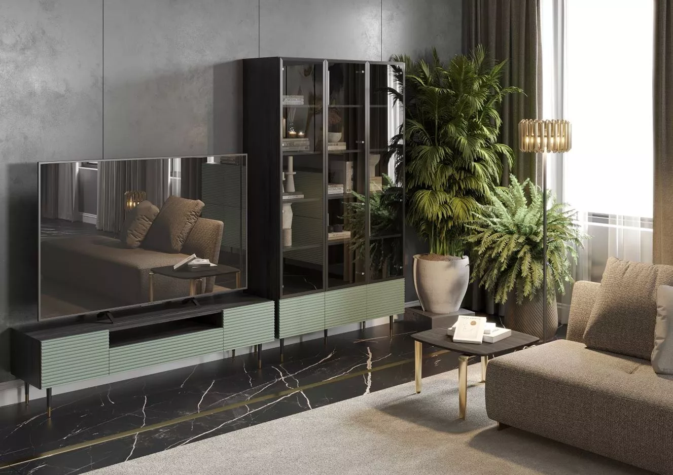 Komoda s dvířky MILIONA - pistáciová zelená / šedá