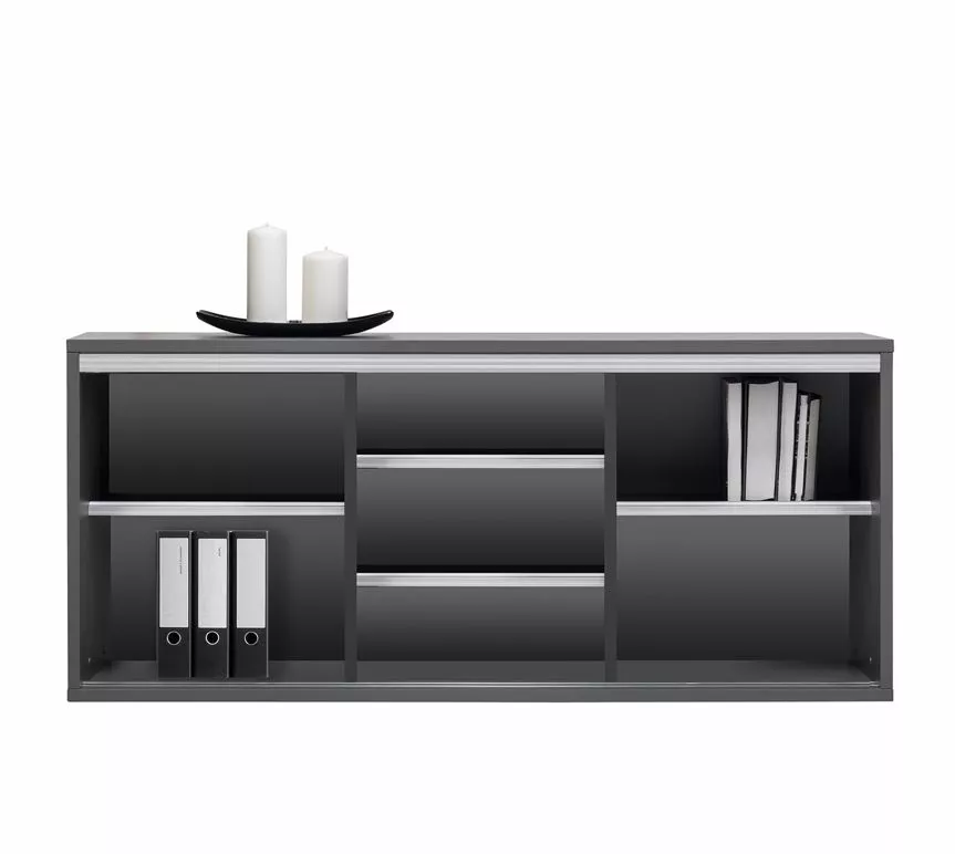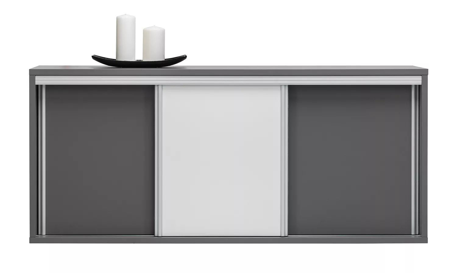 Nízká komoda s dvířky MANKATO - šedá / lesklá bílá