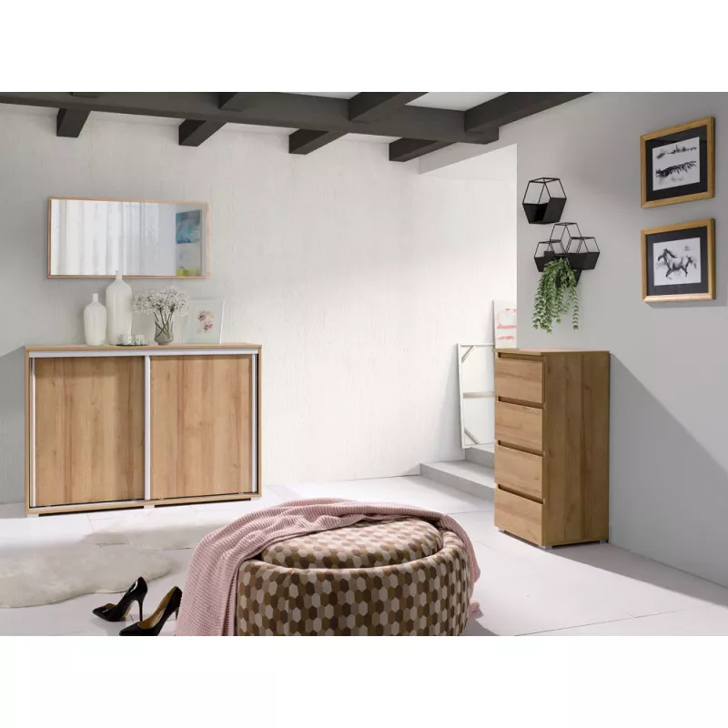 Elegantní komoda BARNUM s posuvnými dveřmi je ideálním řešením pro efektivní a úsporné ukládání věcí. Díky chytrému designu šetří místo v místnosti, což oceníte zejména v menších interiérech. Posuvné dveře skryjí uložené předměty, zatímco jejich snadné otevírání zajistí rychlý a pohodlný přístup ke všemu, co potřebujete mít po ruce.