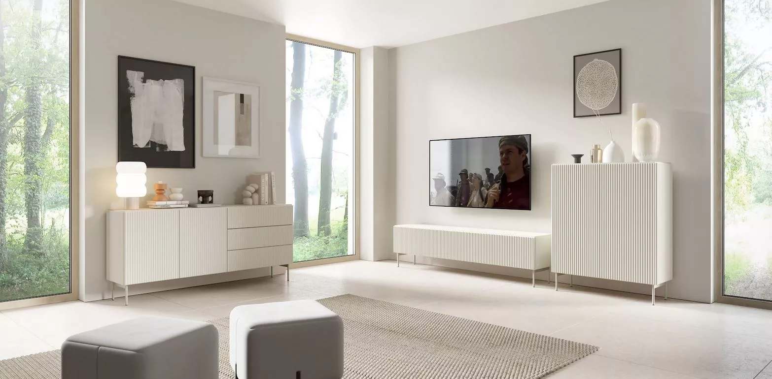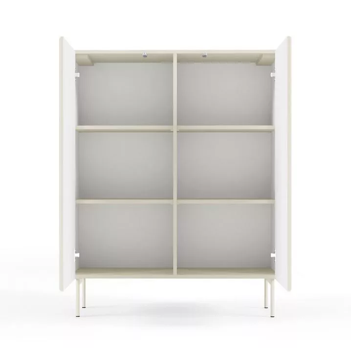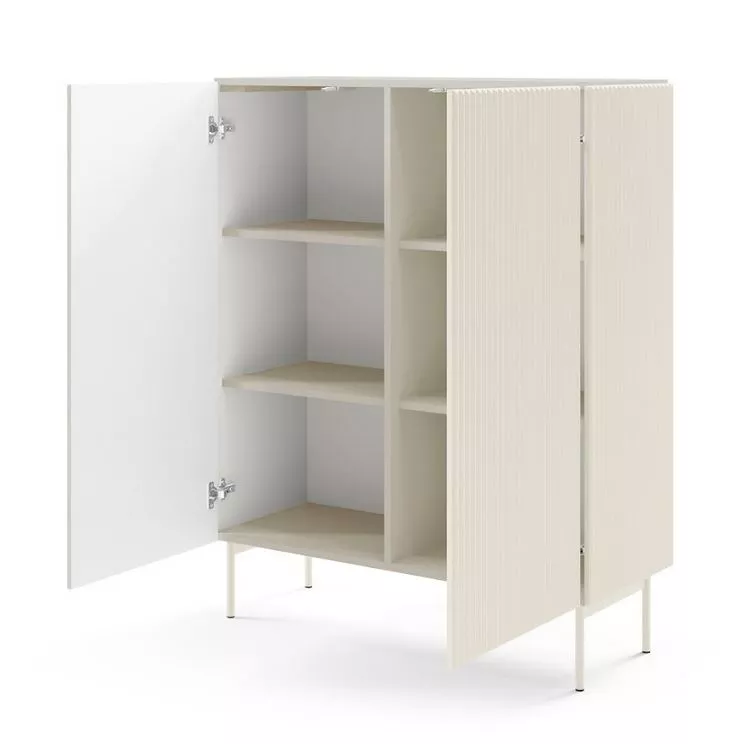 Získejte do svého domova styl i funkčnost s vysokou komodou s dvířky BOAZ. Hluboké police uvnitř nabídnou praktický úložný prostor, zatímco bezúchytková čela v kombinaci s jemně drážkovaným povrchem na bocích i dvířkách zaujmou originálním vzhledem. Rovné kovové nohy odtrhují moderní charakter nábytku, který spojuje eleganci, svěžest i harmonii v duchu aktuálních trendů.