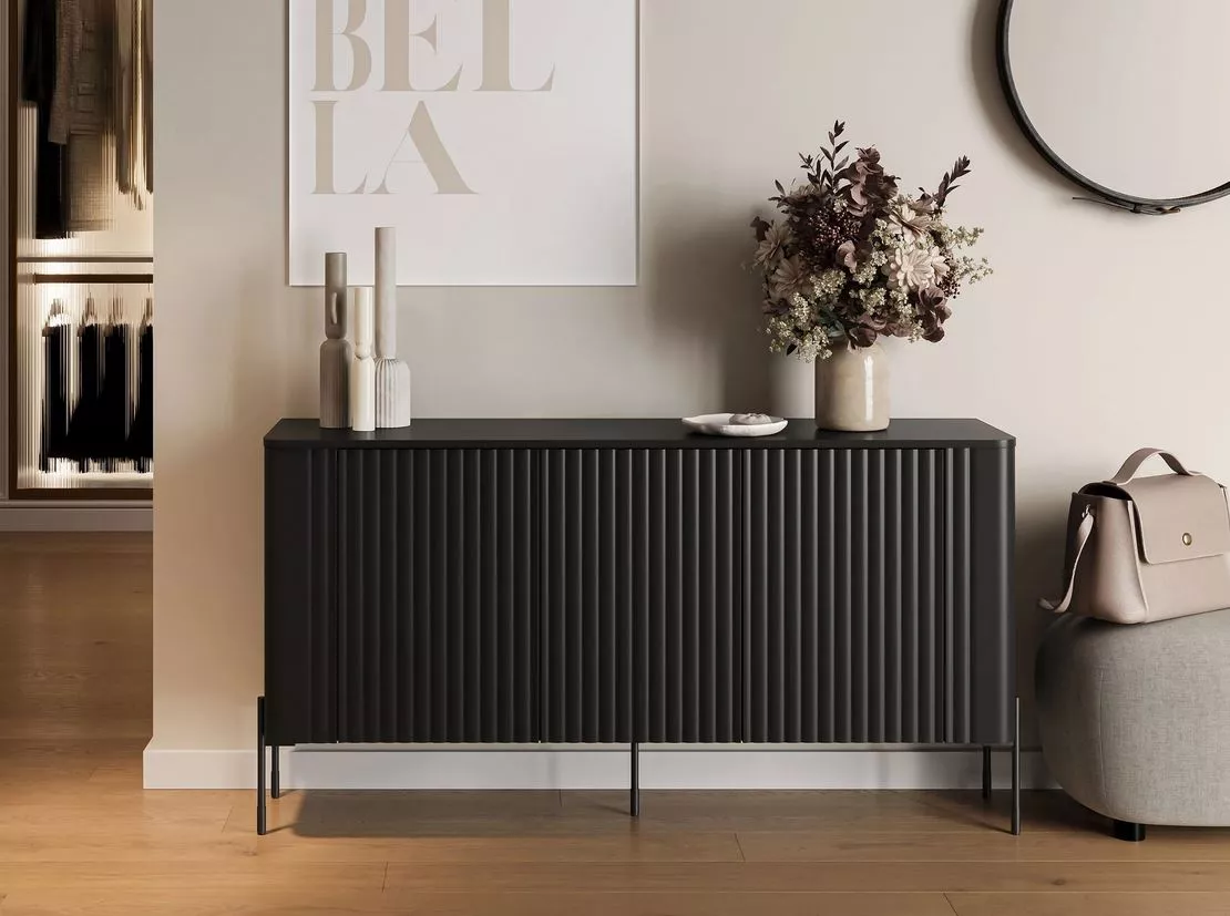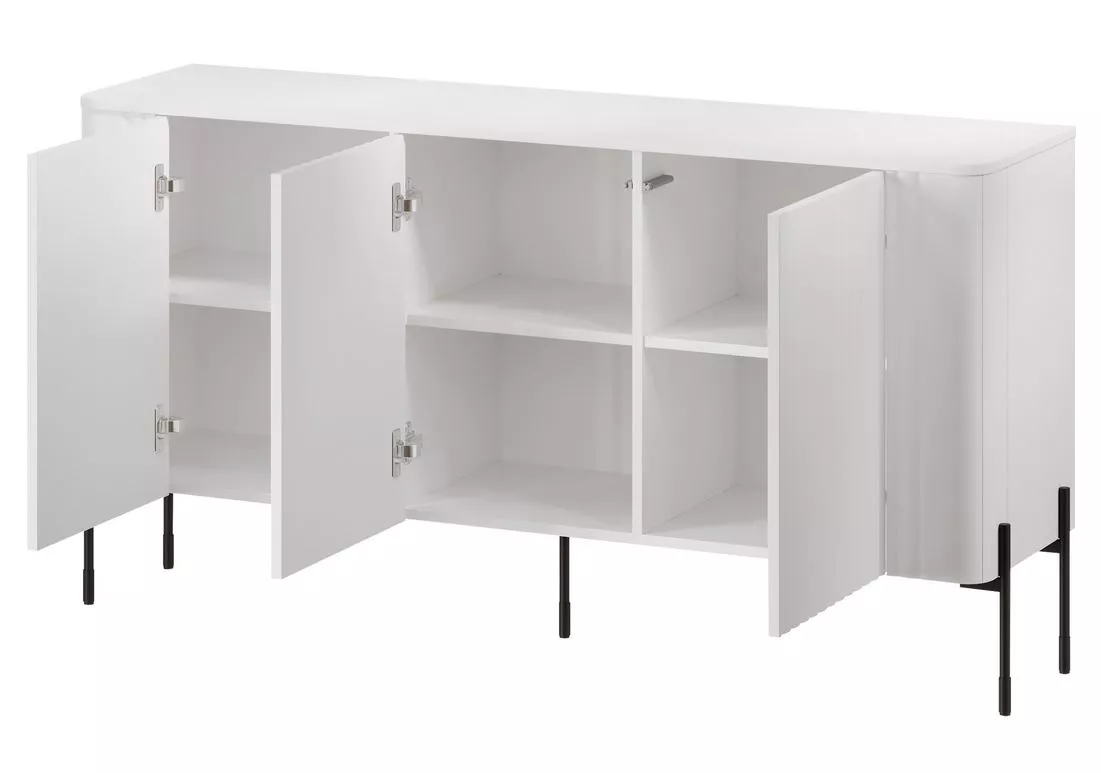 Pořiďte si komodu CALERA a vdechněte interiéru styl i praktičnost. Dvířka se zaoblenými hranami a výrazným frézováním zaujmou na první pohled, zatímco vysoké kovové nohy a systém otevírání PUSH TO OPEN zajistí snadné používání. Komoda je ideální na oblečení, dokumenty i dekorace a bude ozdobou každé místnosti.