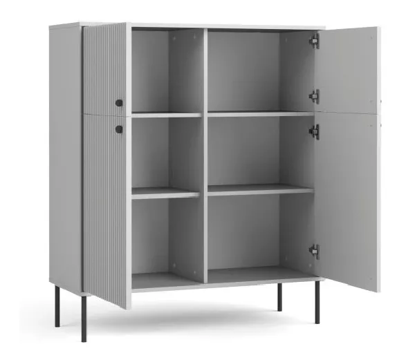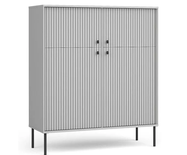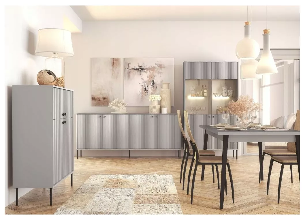 Objevte komodu s dvířky MALAMBO 2, která vnese do prostoru klid a harmonii díky své módní šedé barvě. Zavřené skříňky nabízí praktické a přehledné úložné řešení. Jemně drážkovaná dvířka dodávají komodě elegantní texturu a charakter.