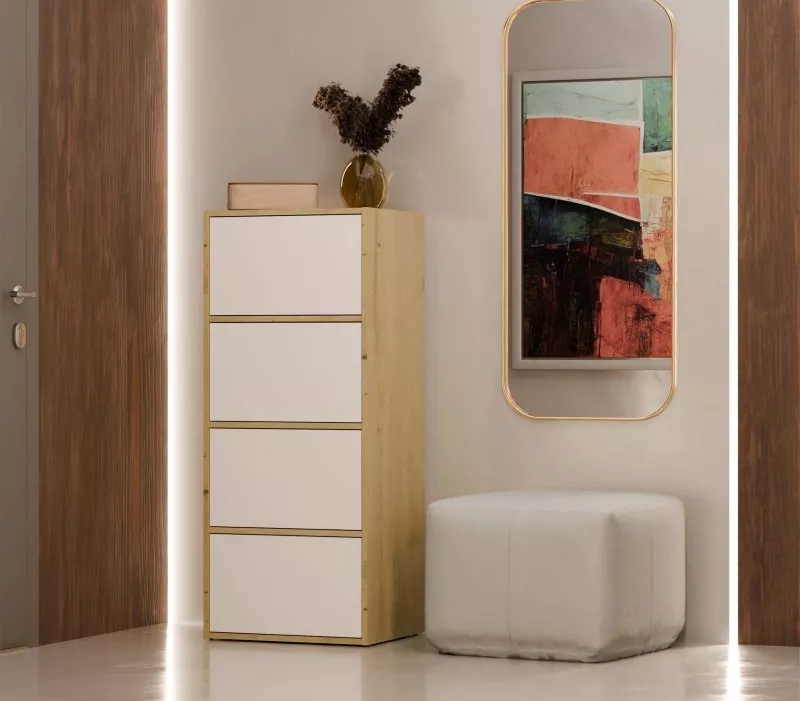 Úzká komoda s dvířky ATALLA - dub artisan / bílá
