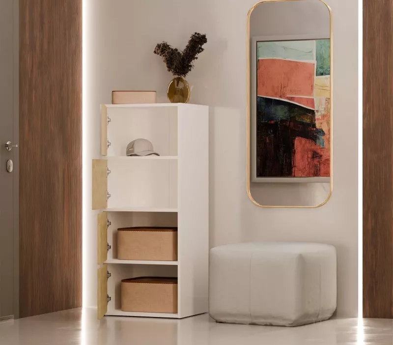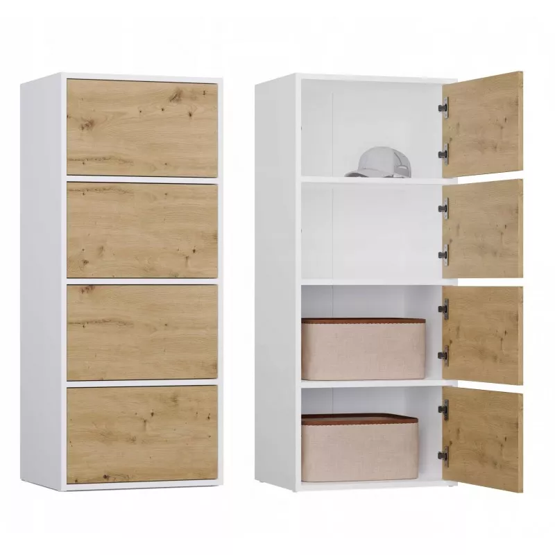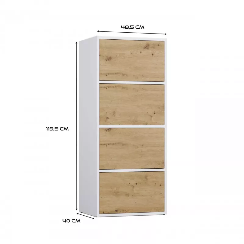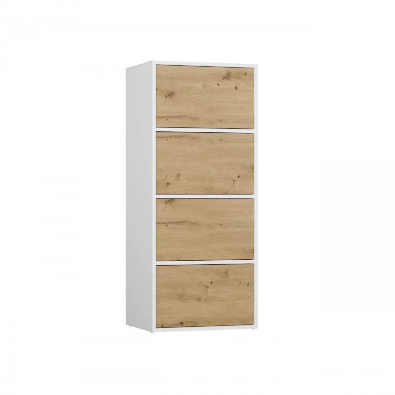 Úzká komoda s dvířky ATALLA - bílá / dub artisan