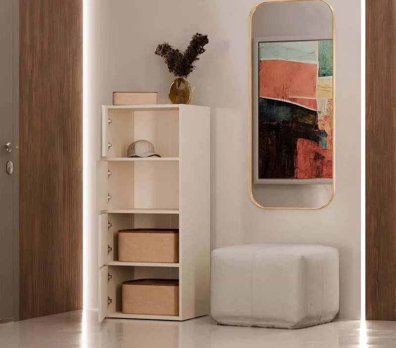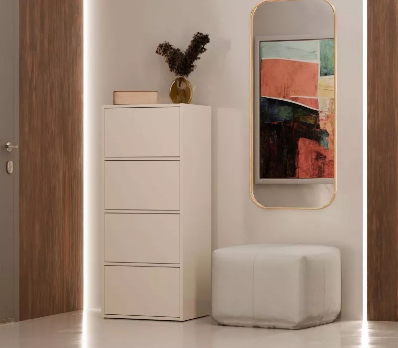 Úzká komoda s dvířky ATALLA vyniká čistými liniemi a minimalistickým vzhledem. Komoda nabízí dostatek prostoru pro uložení všech potřebných věcí. Dvířka mají systém otevírání TIP-ON, což zpříjemňuje každodenní používání.