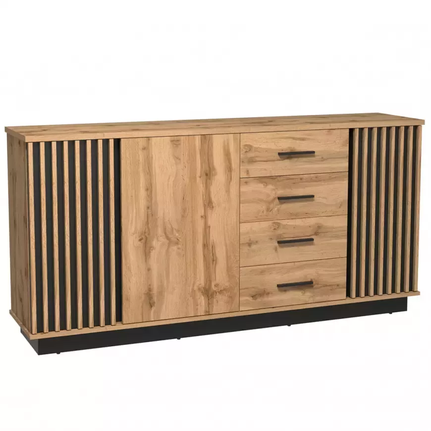 Široká kombinovaná komoda CATAWBA na první pohled zaujme svými designovými lamelovými dvířky. Komoda nabídne spoustu úložného prostoru v podobě 4 šuplíků a 2 skříněk. Její originální design a kvalitní zpracování vdechnou vašemu interiéru nadčasový styl a eleganci.