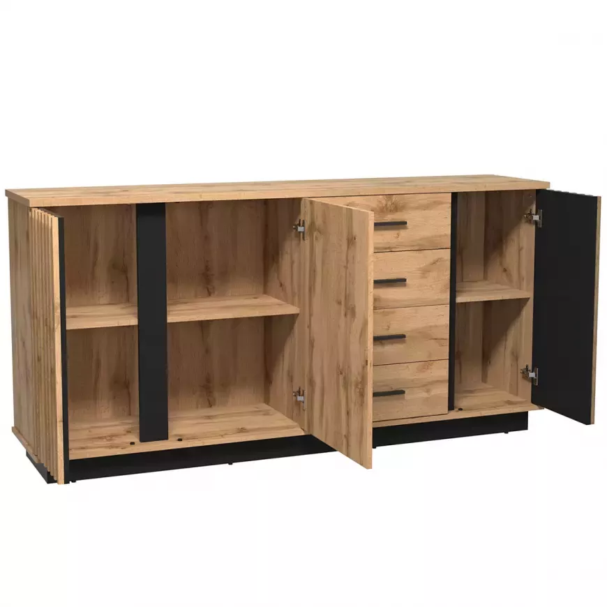 Široká kombinovaná komoda CATAWBA - dub wotan / černá