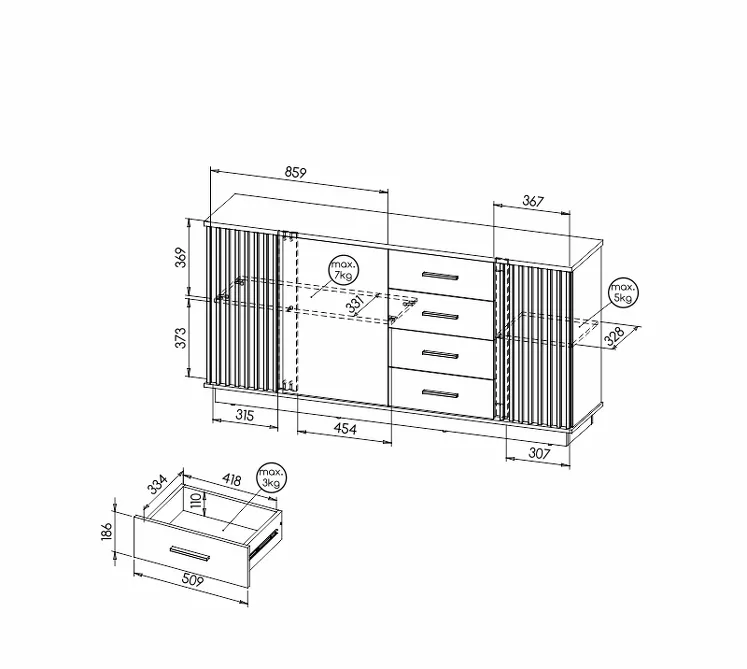 - maximální nosnost 1 šuplíku: 3 kg