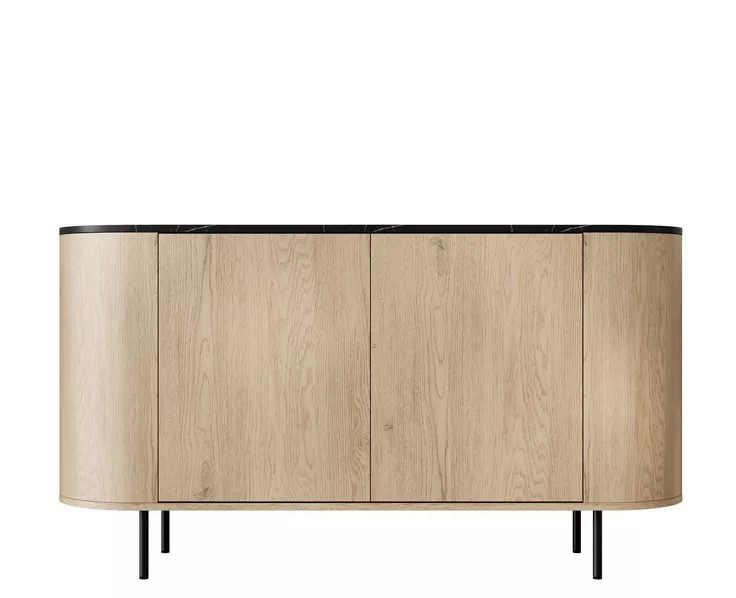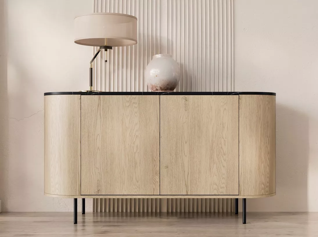 Komoda s dvířky TANGIER - dub cremona / černý mramor / černá
