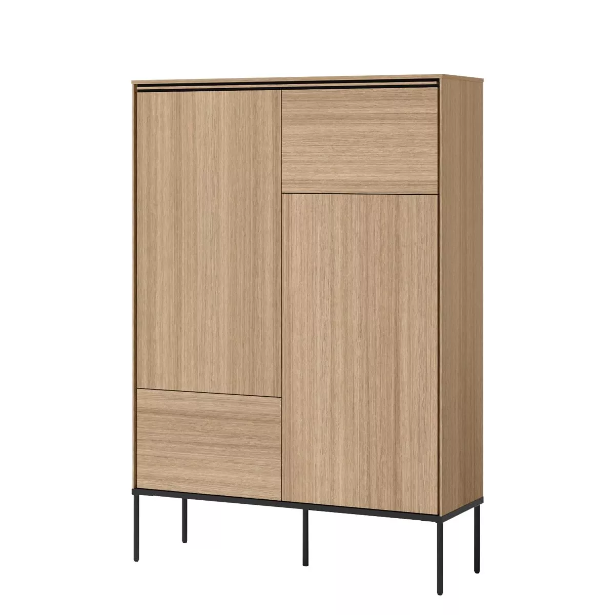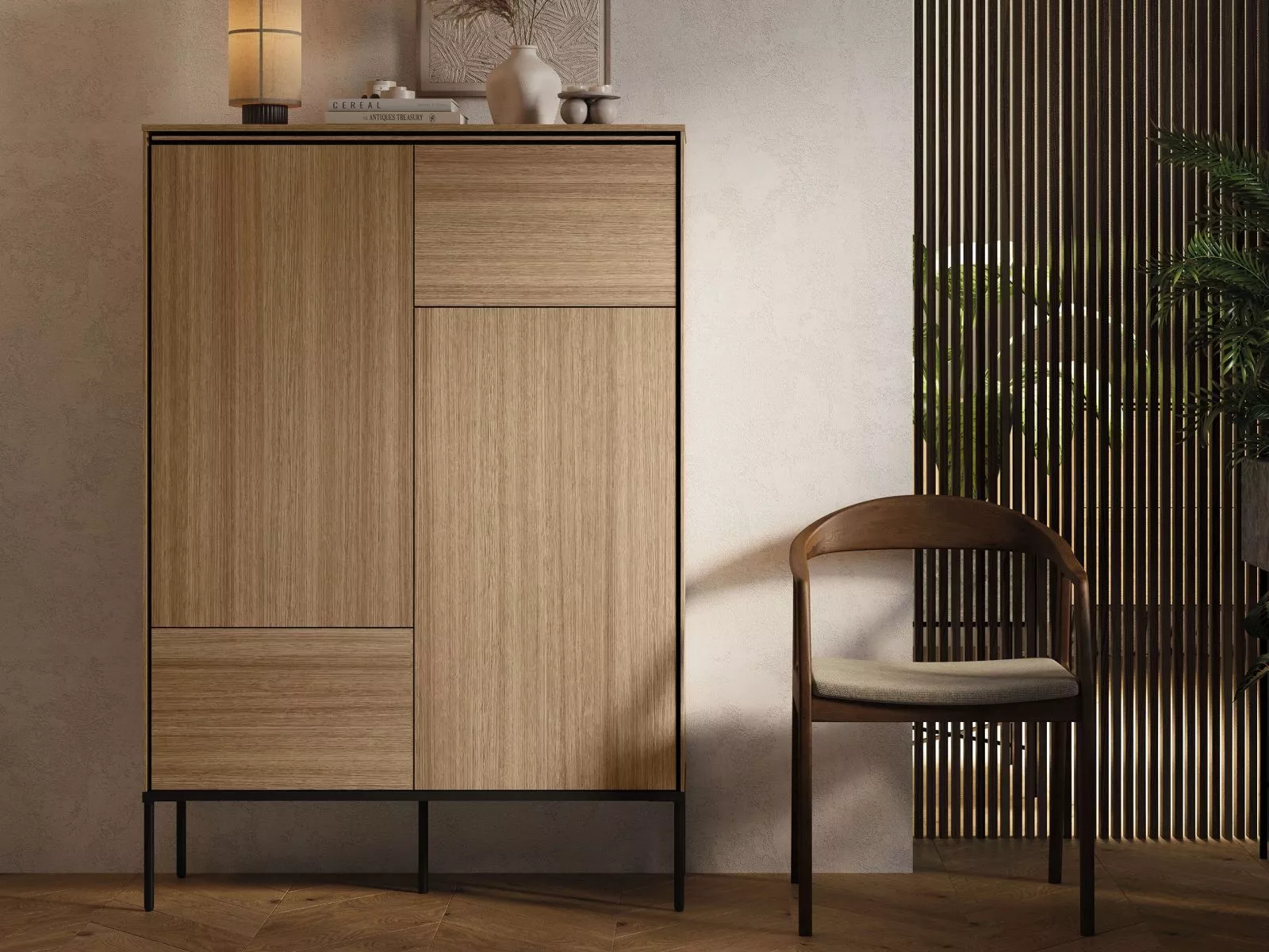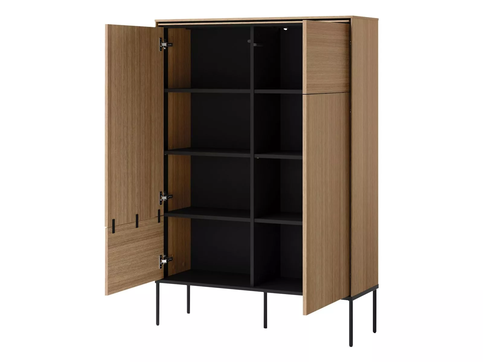 Vneste do interiéru pořádek i osobitý styl s vysokou komodou ANACORTES. Uzavřený prostor za dvířky ukryje oblečení, dokumenty i domácí doplňky, takže vše zůstane přehledně uschované. Vyšší konstrukce působí elegantně a poskytuje dostatek úložného místa i na menší ploše. Kovové nohy a industriální design dodají nábytku moderní charakter a lehkost.