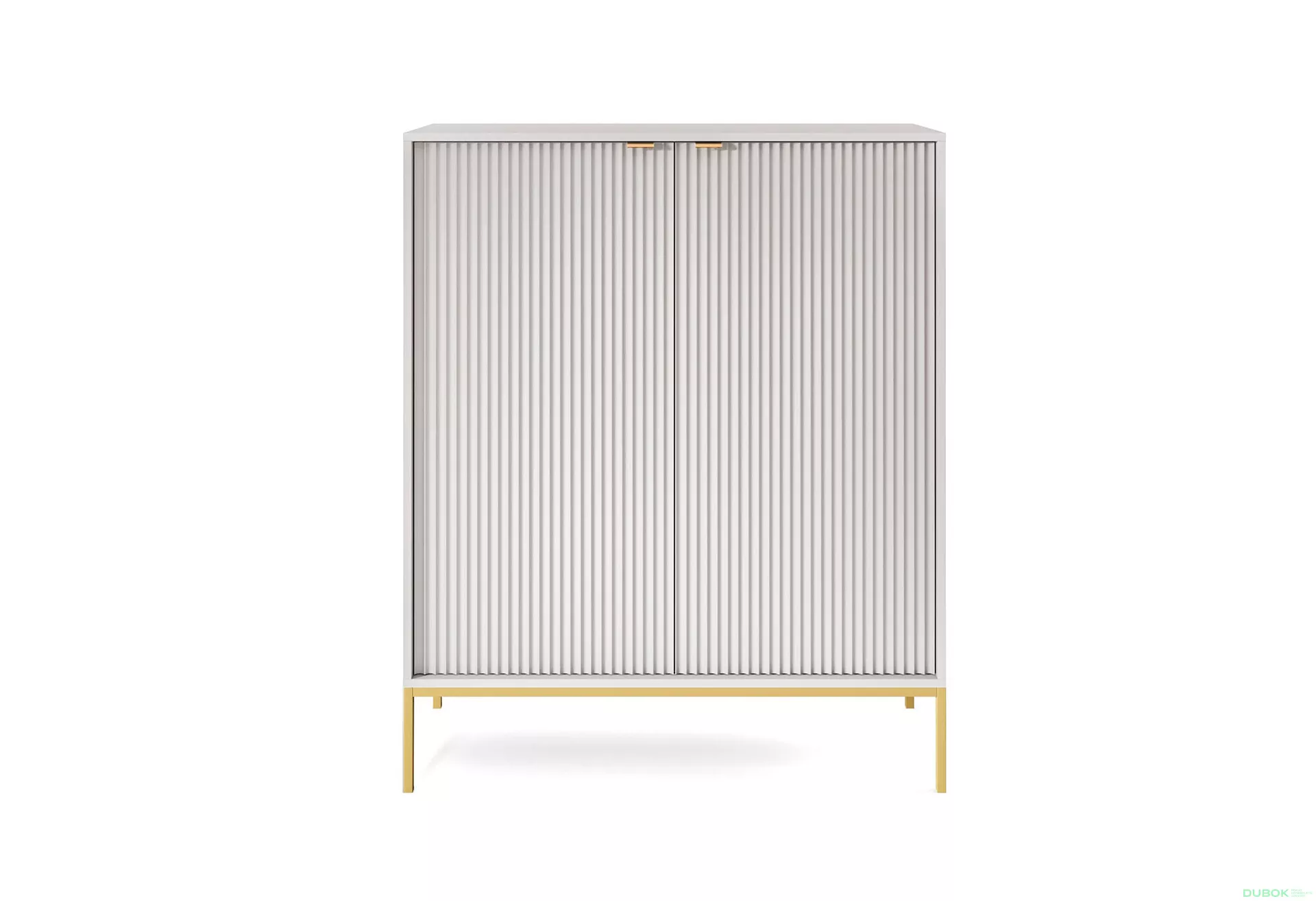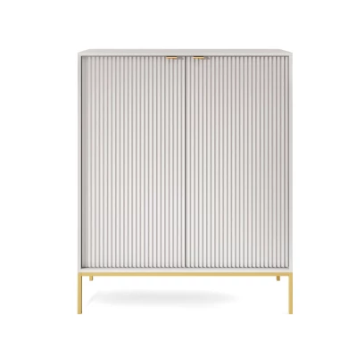Vysoká komoda MISHEEL uchvátí především svým originálním a nadčasovým designem v podobě drážkovaných předních částí dvířek. Skvěle zapadne do obývacích pokojů nebo ložnic. Disponuje 2 skříňkami s policemi pro snadné uschování předmětů.