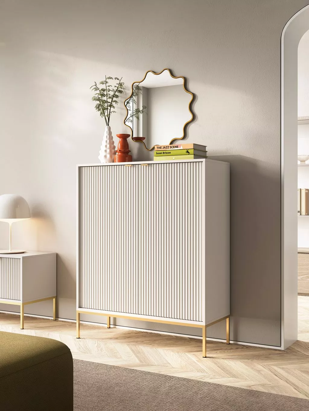 Vysoká komoda MISHEEL - kašmír / zlatá