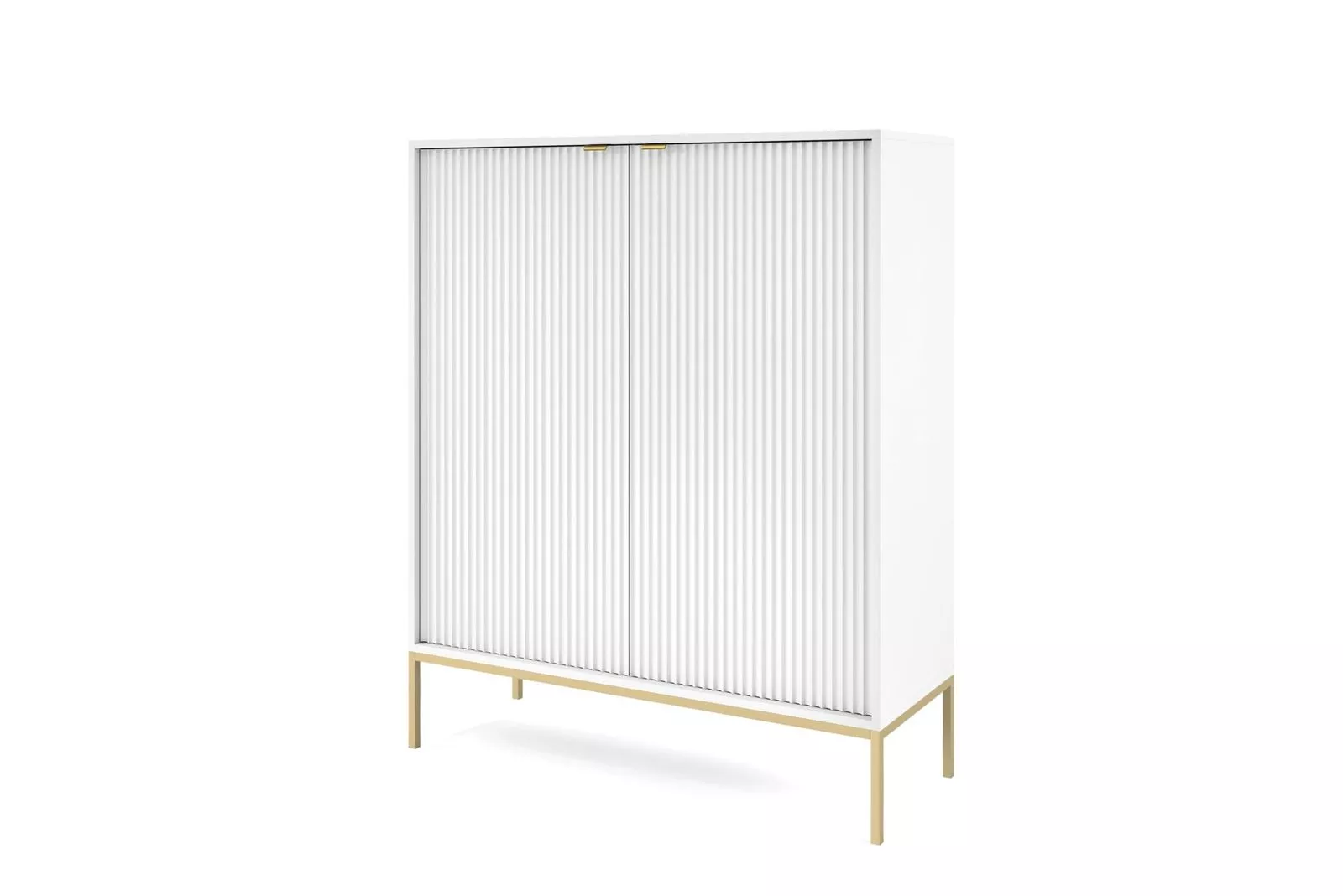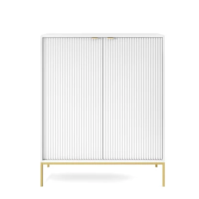 Vysoká komoda MISHEEL uchvátí především svým originálním a nadčasovým designem v podobě drážkovaných předních částí dvířek. Skvěle zapadne do obývacích pokojů nebo ložnic. Disponuje 2 skříňkami s policemi pro snadné uschování předmětů.