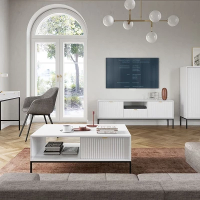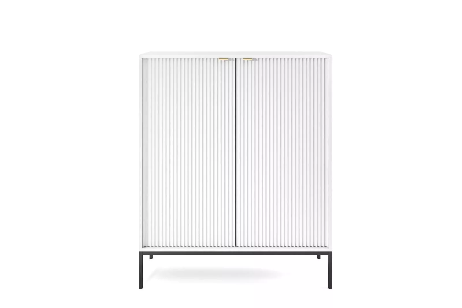 Vysoká komoda MISHEEL uchvátí především svým originálním a nadčasovým designem v podobě drážkovaných předních částí dvířek. Skvěle zapadne do obývacích pokojů nebo ložnic. Disponuje 2 skříňkami s policemi pro snadné uschování předmětů.