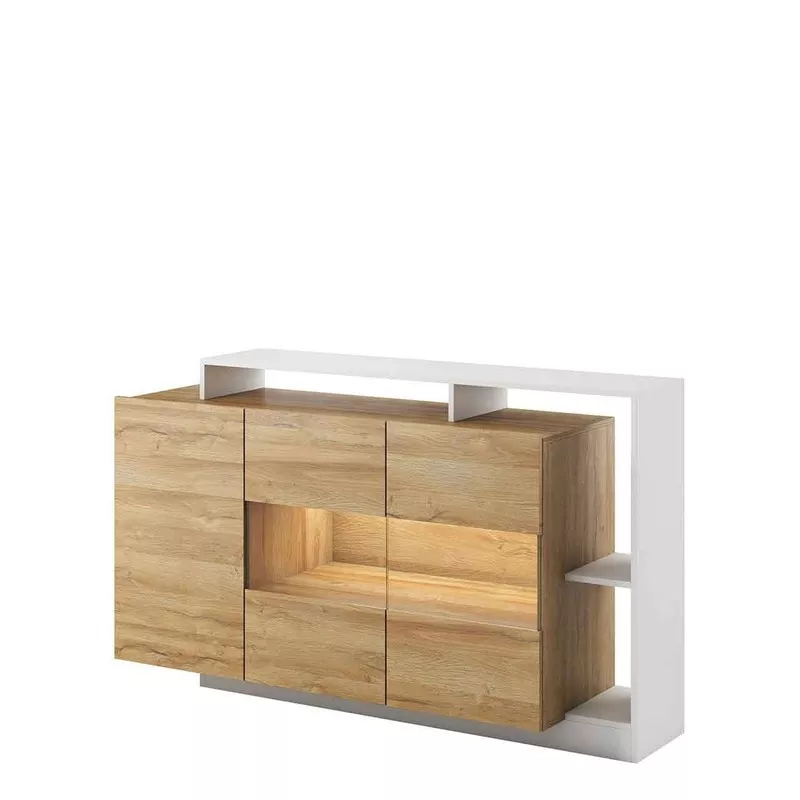 Komoda s LED osvětlením ERICKA - dub / bílá