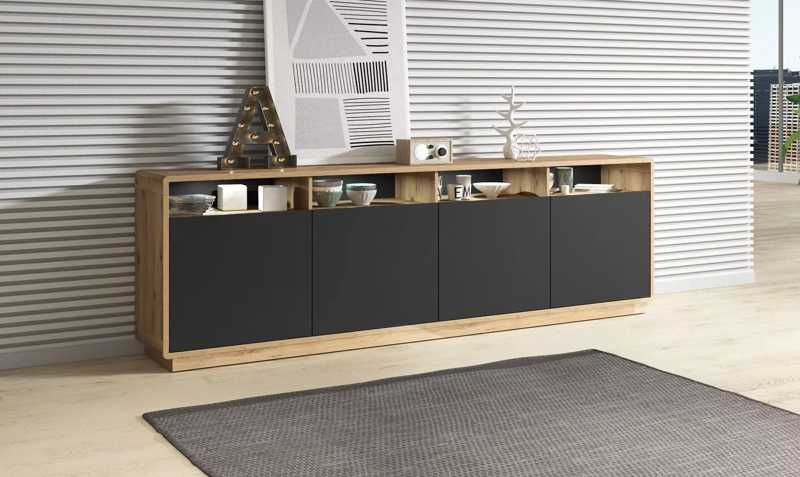 Praktická kombinovaná komoda NIKET najde své využití v každém moderním interiéru. Ve 4 prostorných skříňkách a 4 výklencích můžete snadno ukládat jakékoliv předměty, včetně studijního materiálu či sezónního oblečení.