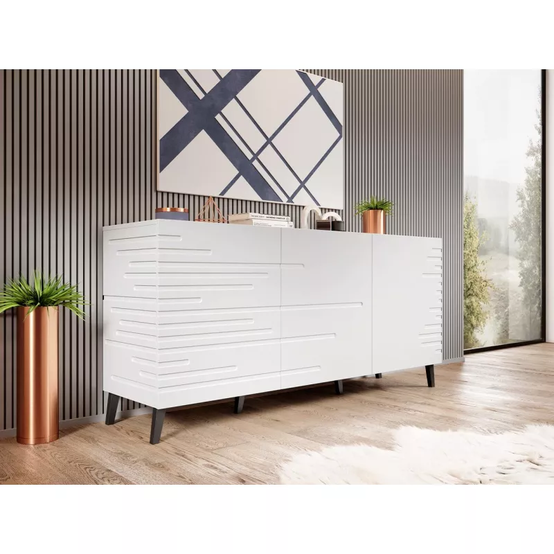 Komoda CORONEL najde své využití v každém moderním interiéru. V prostorných skříňkách lze snadno ukládat jakékoliv předměty, včetně studijního materiálu či sezónního oblečení. Komoda je vyrobena z kvalitní MDF desky.