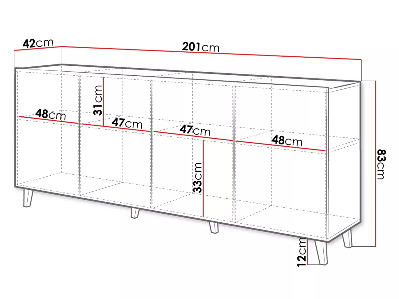 Charakteristickým detailem komody LOLETA jsou vzory výřezů na dvířkách, které narušují symetrii a dodávají tak interiéru trochu dynamiky a jedinečnosti. Při montáži dvířek si navíc můžete vytvořit vlastní kombinaci nebo využít již připravené varianty.