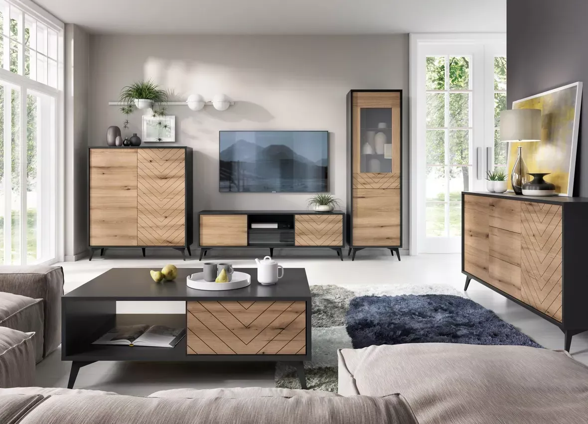 Konferenční stolek NAMIRO v příjemných barvách nabízí spoustu odkládací plochy včetně police a zásuvek. Je spojením krásy a funkčností. Vysoké dřevěné nožičky podtrhují moderní a lehce skandinávský styl.