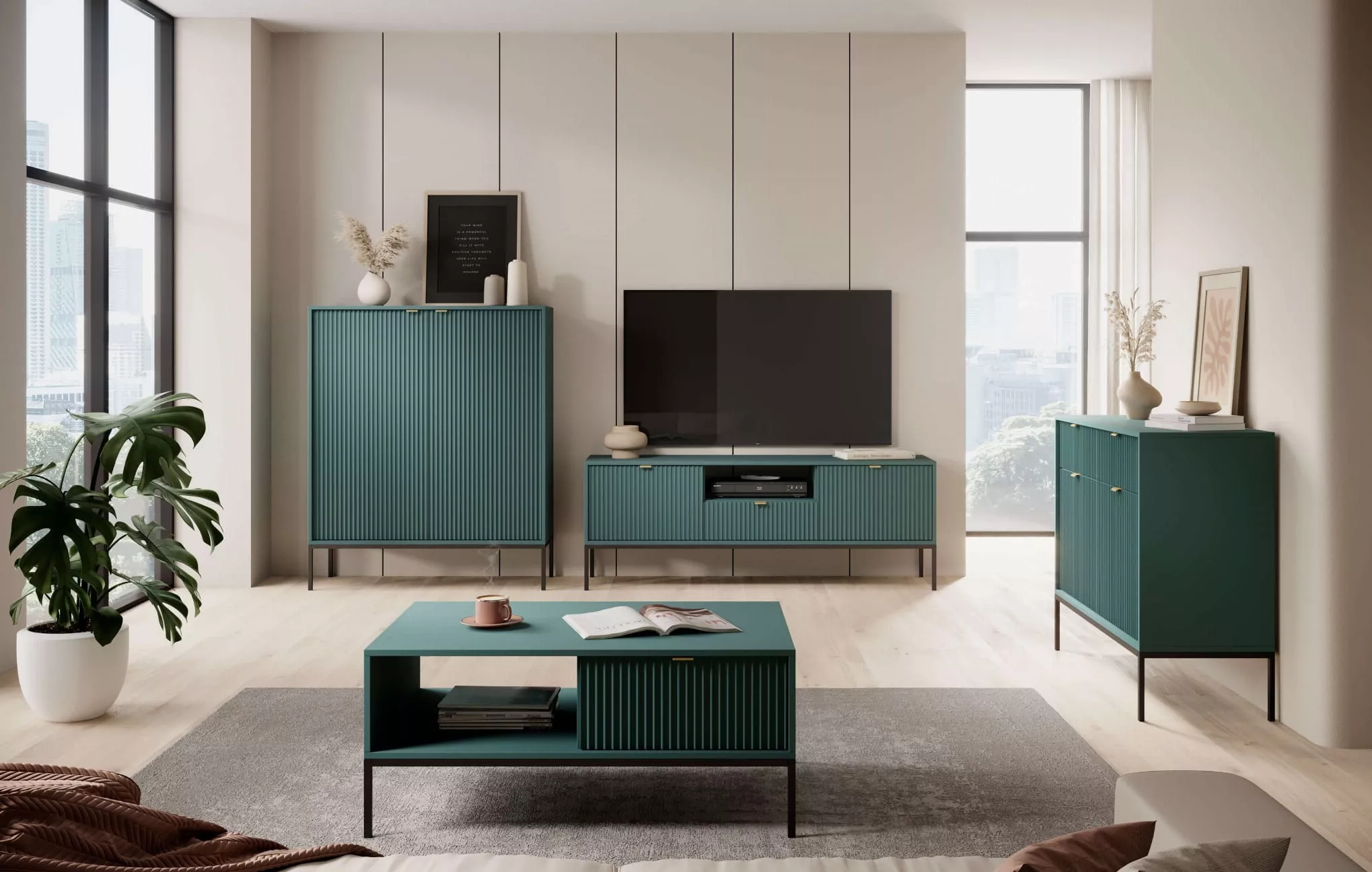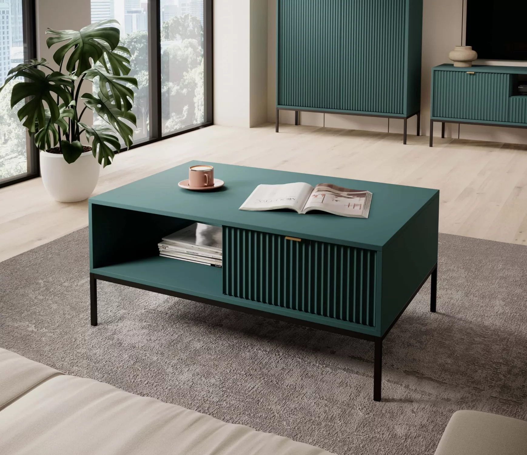 Konferenční stolek MISHEEL - modrozelený / černý