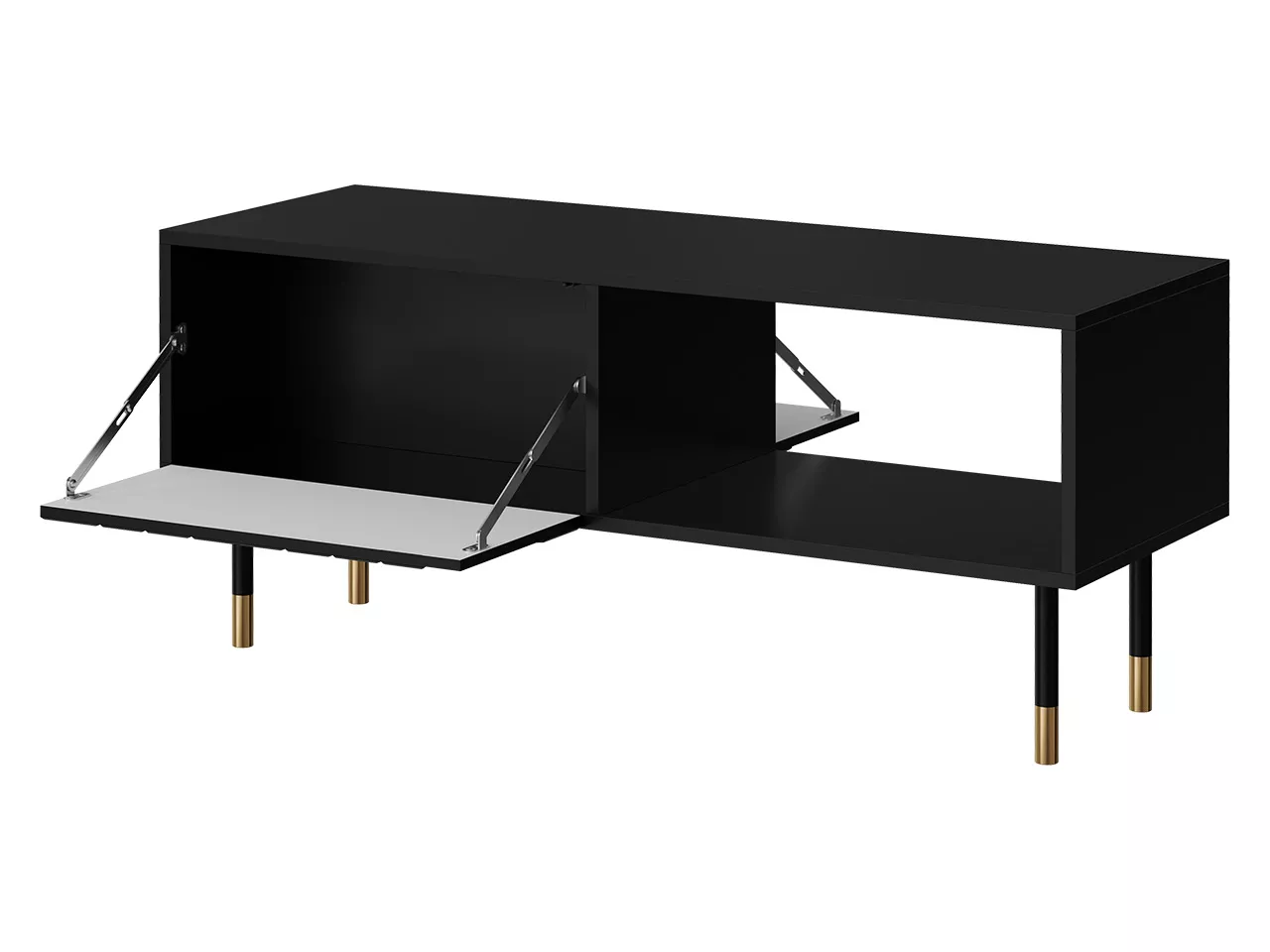 Konferenční stolek SACUL je určený pro milovníky moderního designu. Vysoké zlaté nožky a výrazná vzorovaná dvířka vytváří dokonalou kombinaci. O dostatek úložného prostoru se postará barová skříňka a otevřená police.